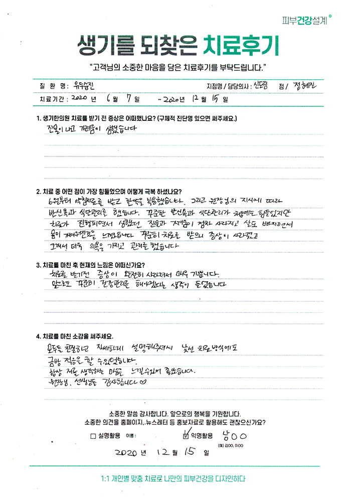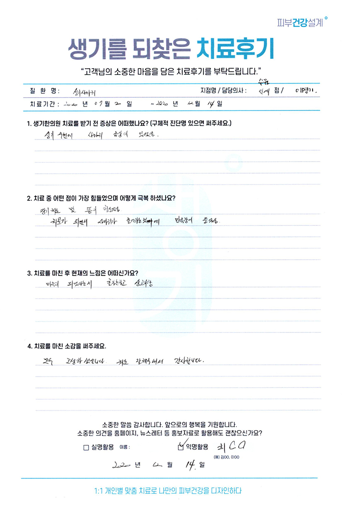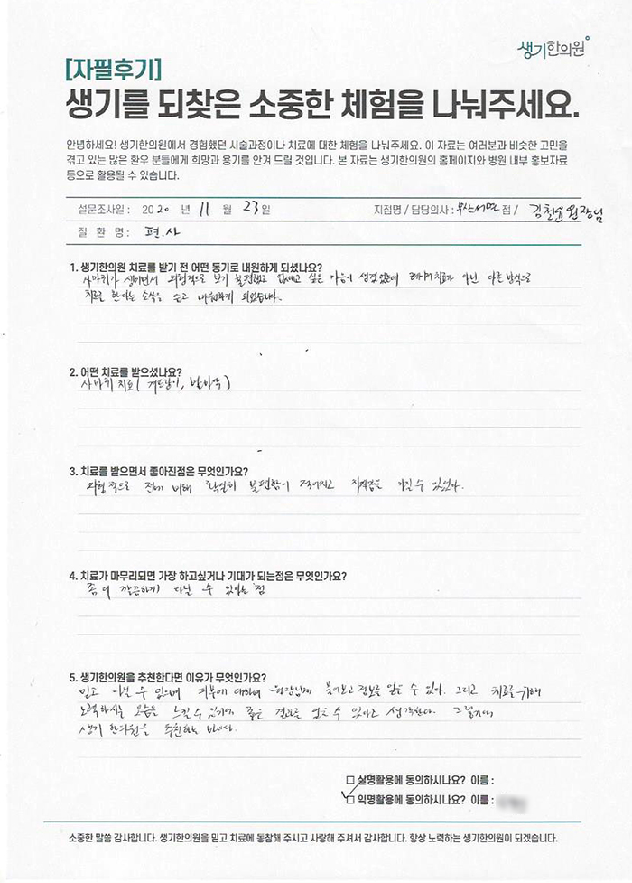 생기한의원과 함께하신 생생한 자필 및 영상 후기를 소개합니다.
