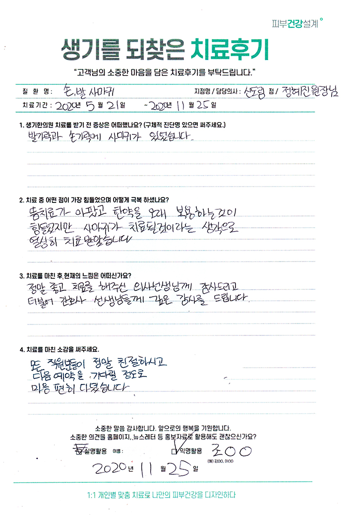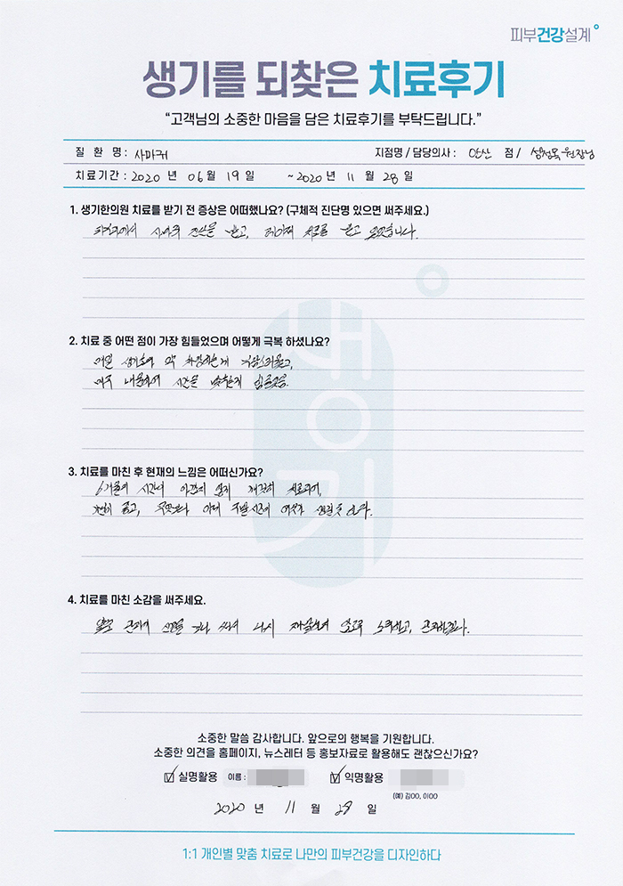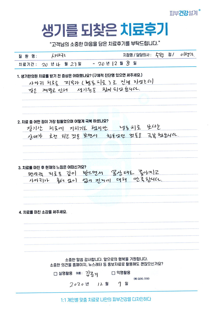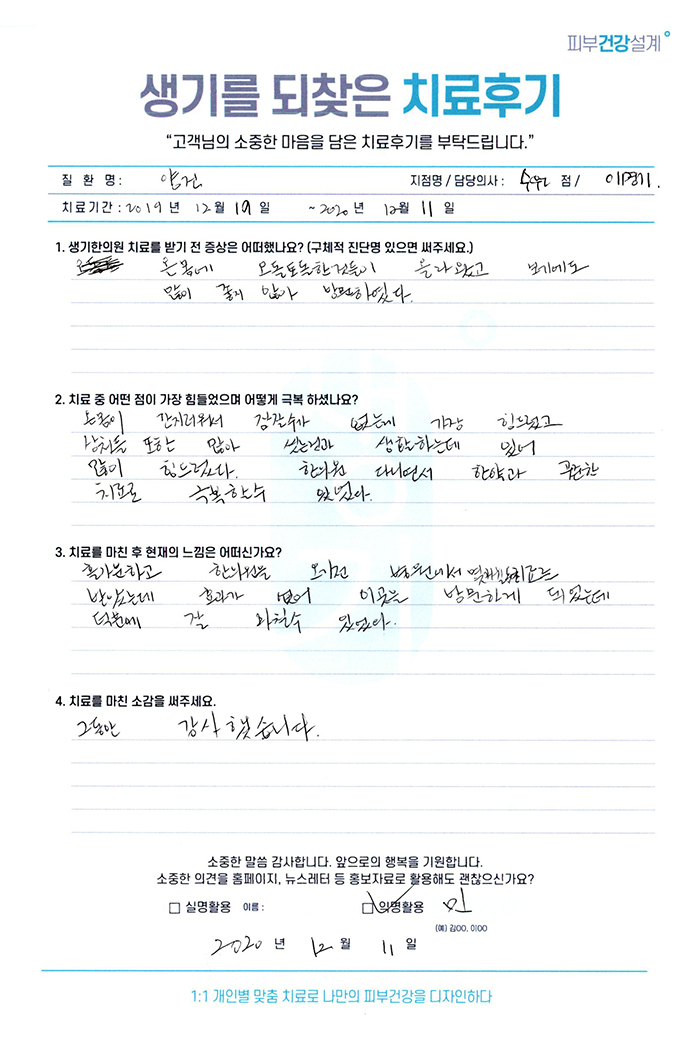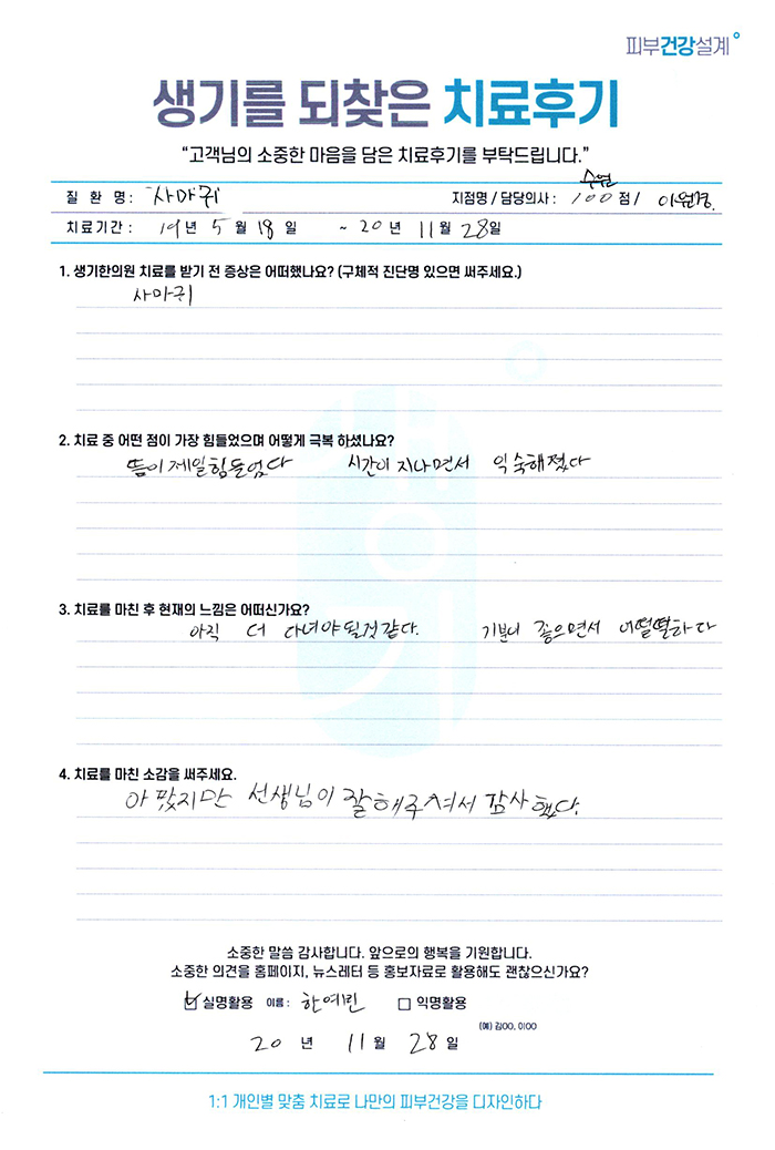 생기한의원과 함께하신 생생한 자필 및 영상 후기를 소개합니다.