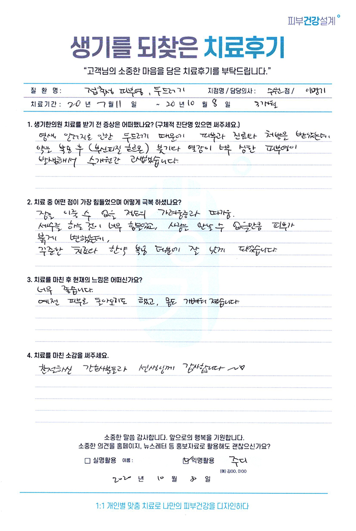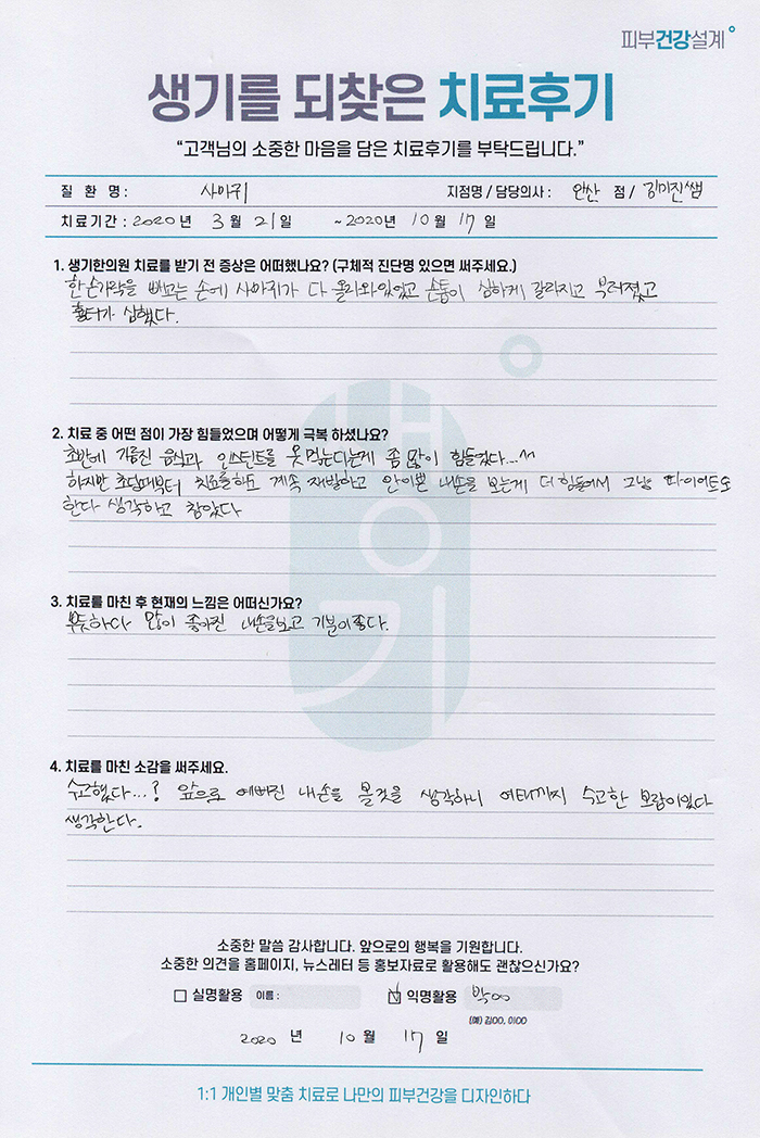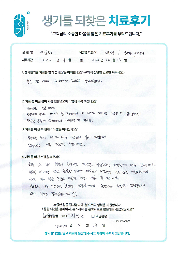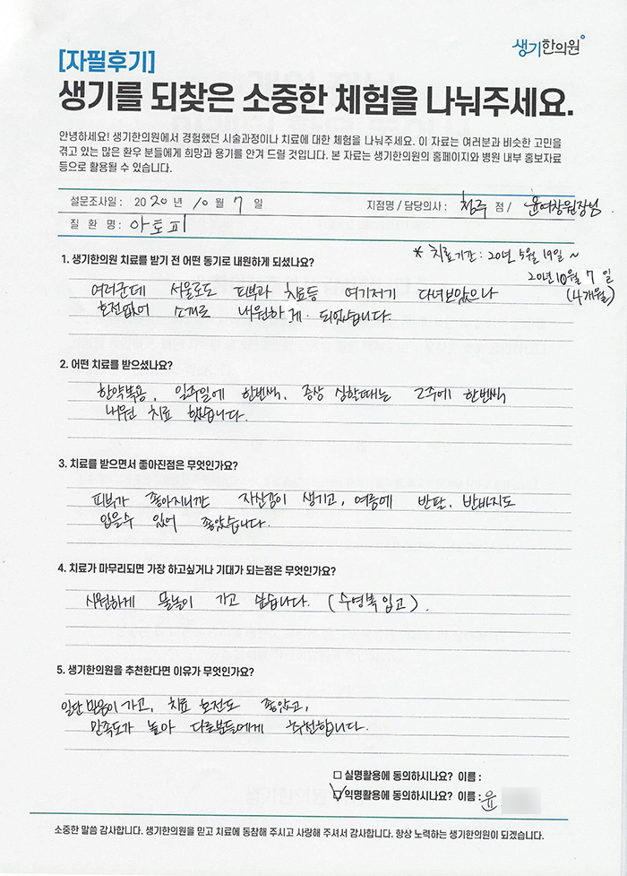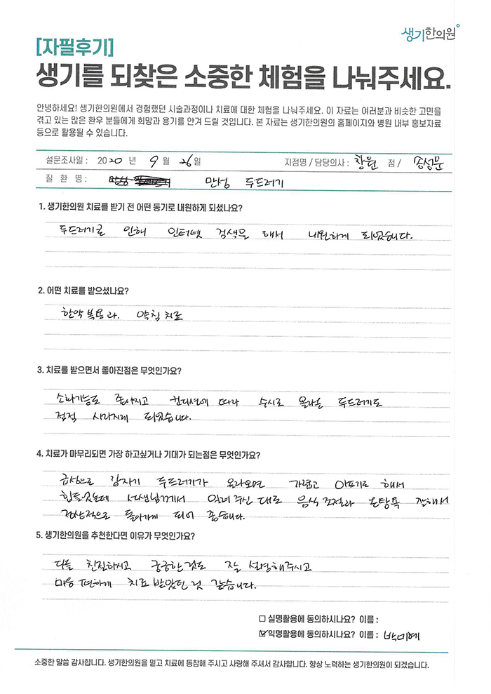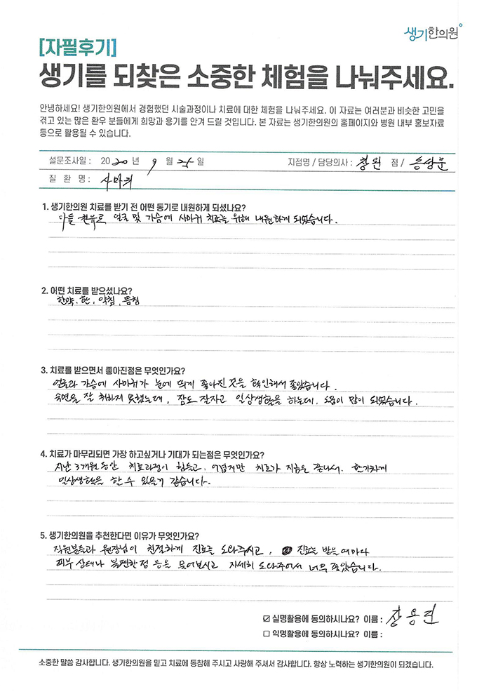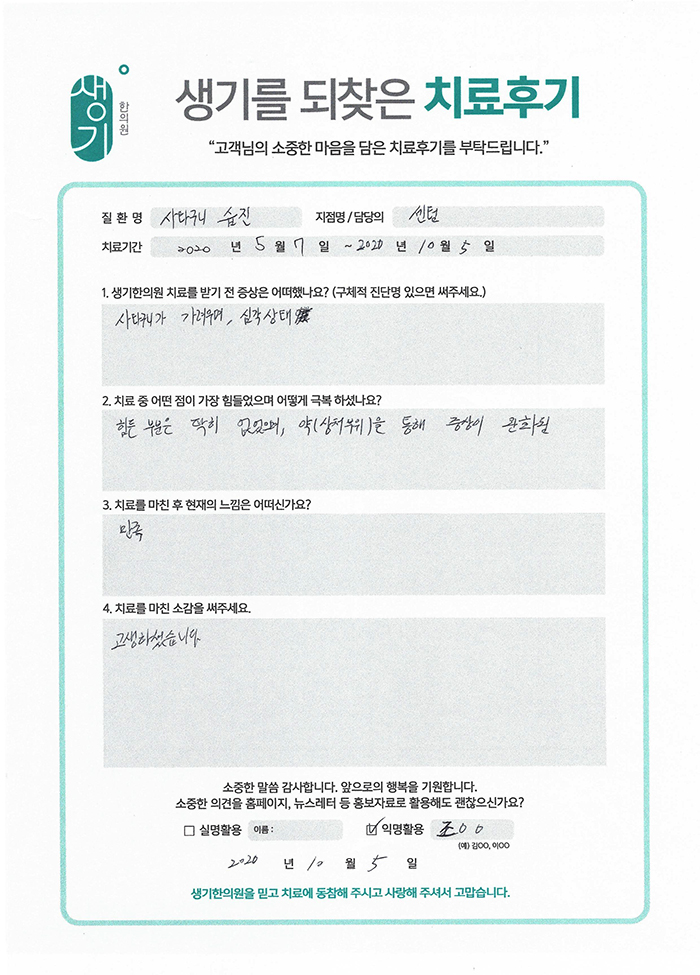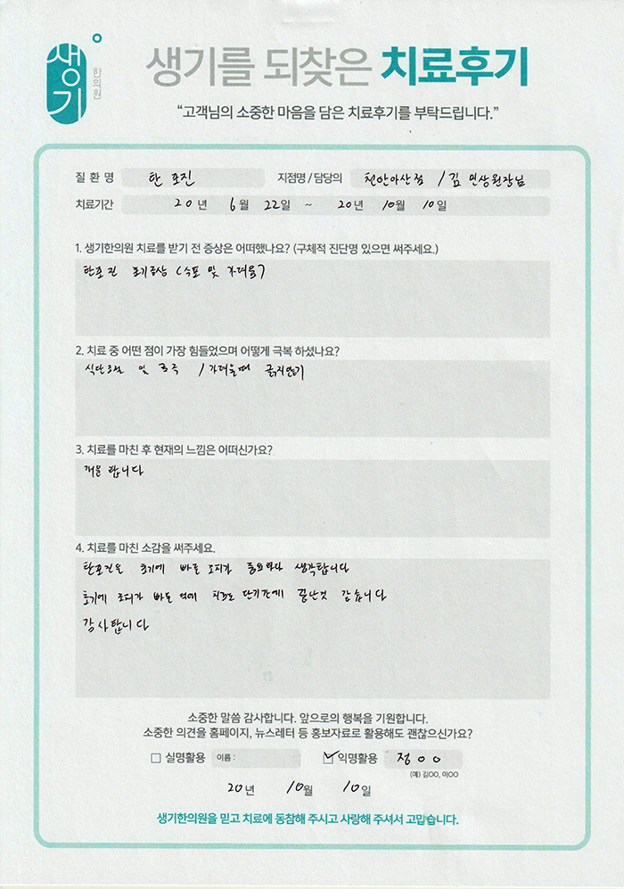 생기한의원과 함께하신 생생한 자필 및 영상 후기를 소개합니다.