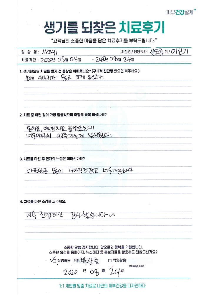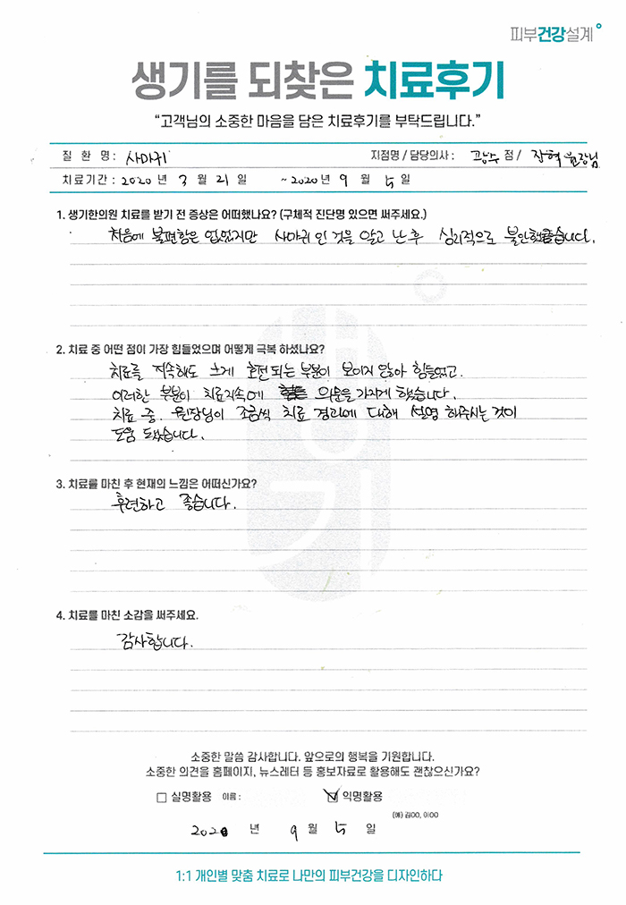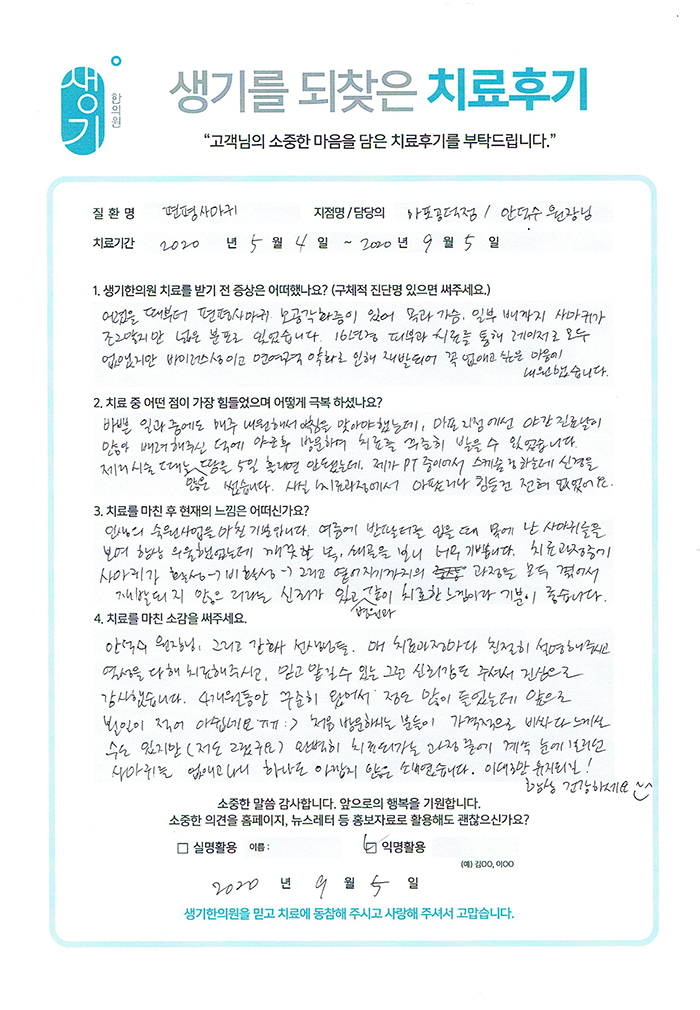생기한의원과 함께하신 생생한 자필 및 영상 후기를 소개합니다.