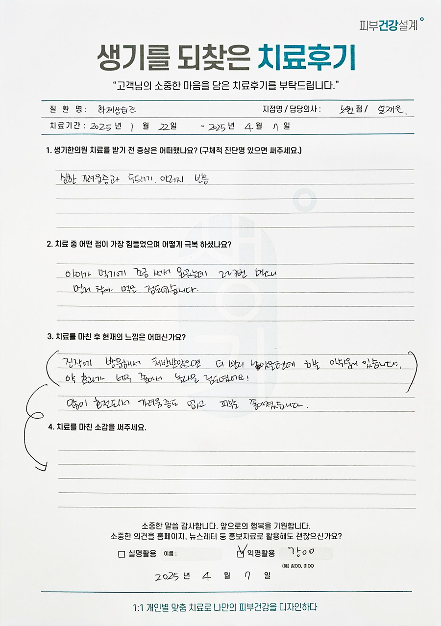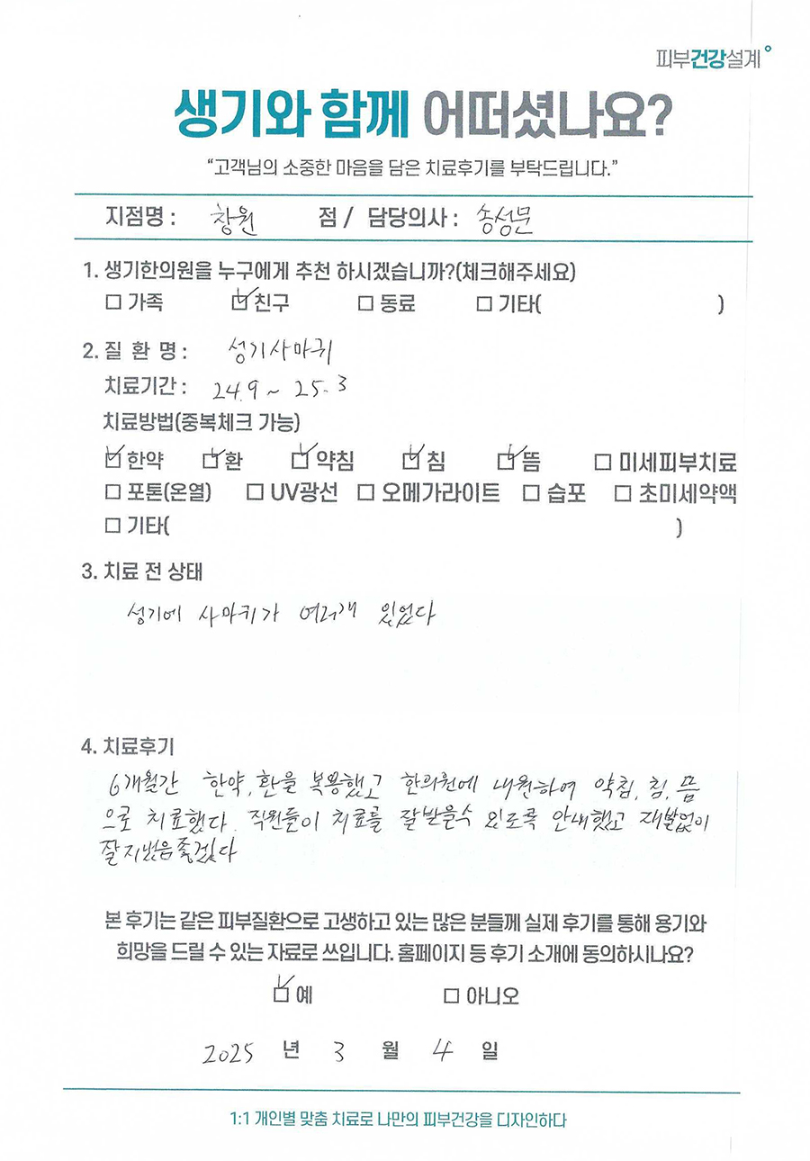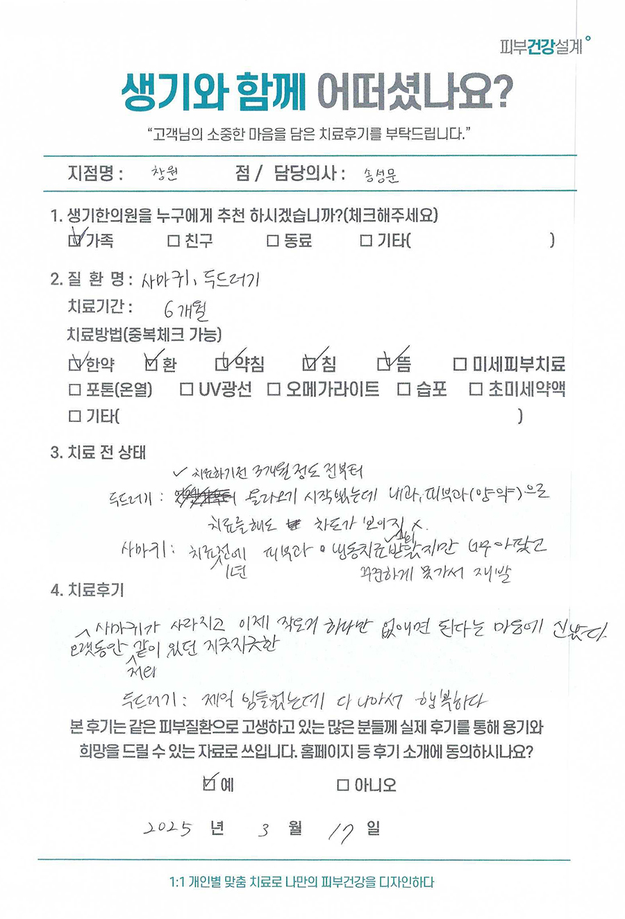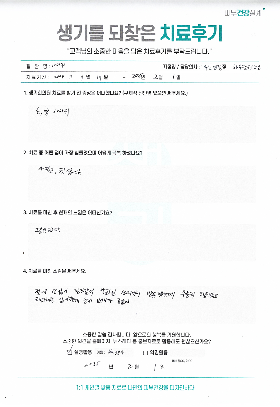 생기한의원과 함께하신 생생한 자필 및 영상 후기를 소개합니다.
