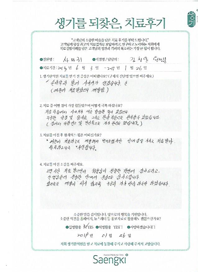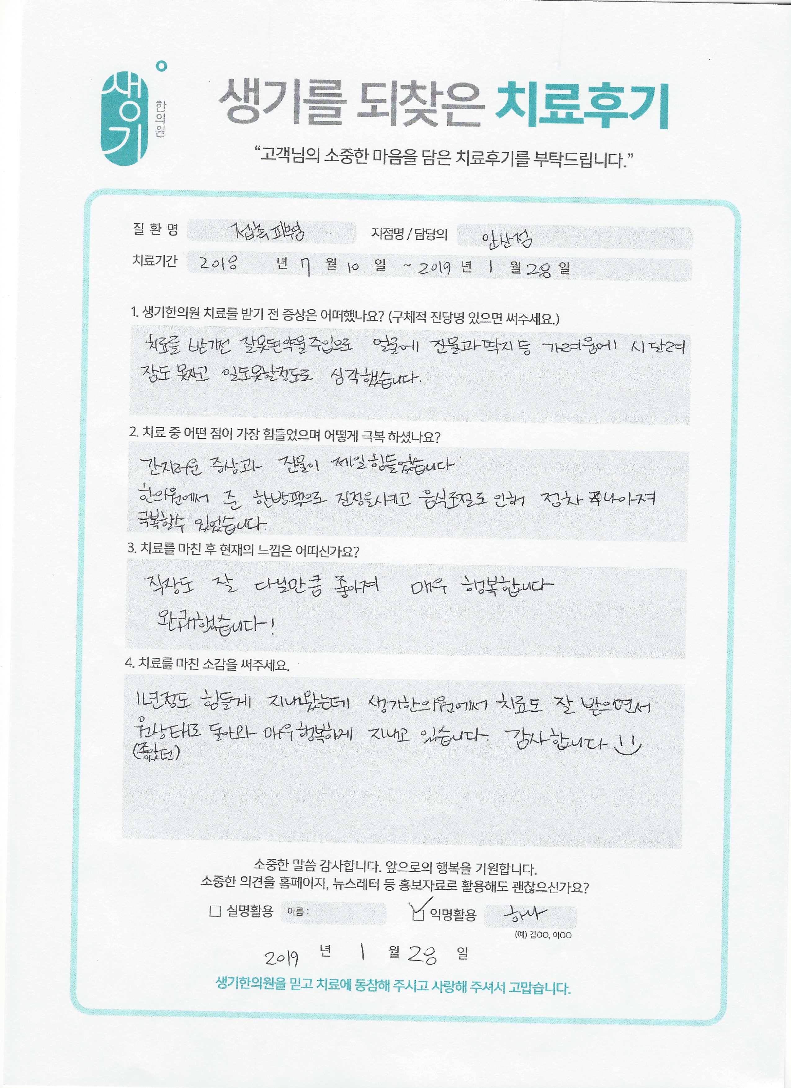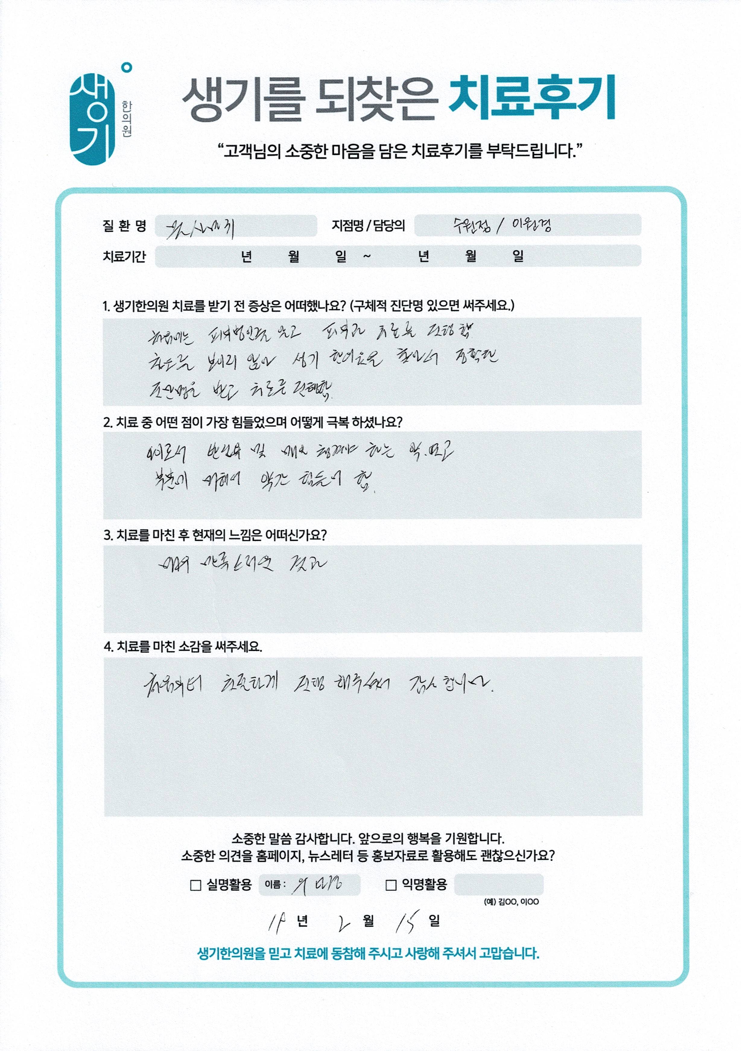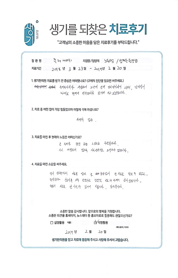 생기한의원과 함께하신 생생한 자필 및 영상 후기를 소개합니다.