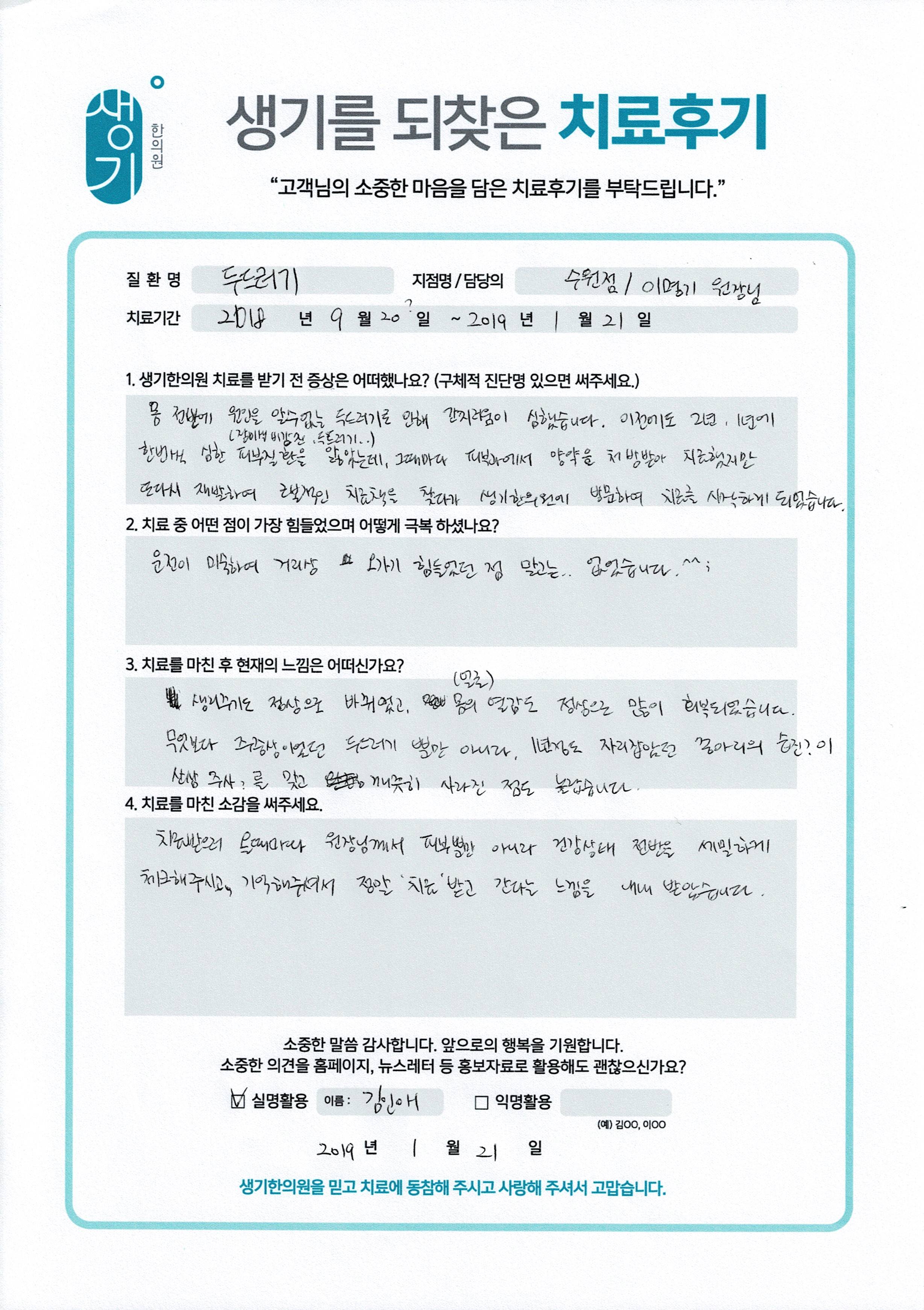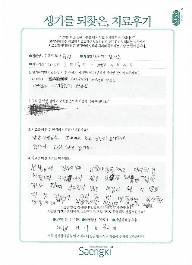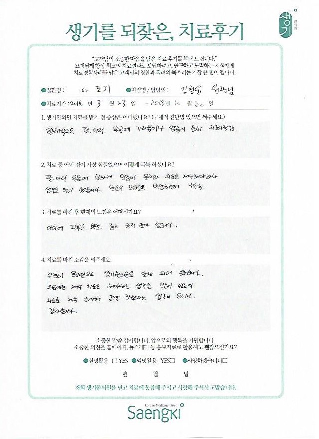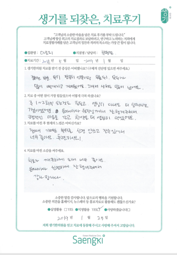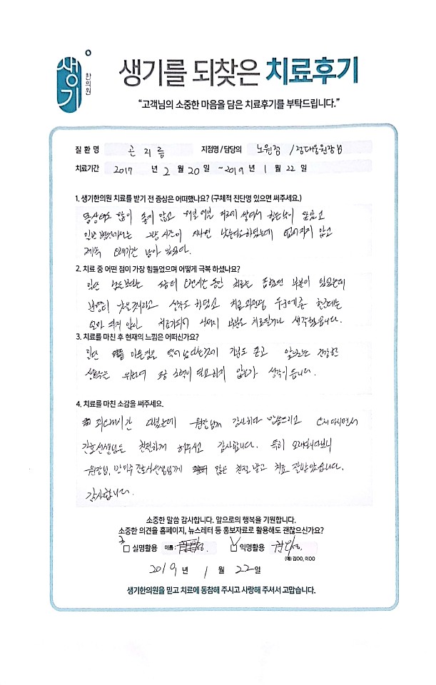 생기한의원과 함께하신 생생한 자필 및 영상 후기를 소개합니다.