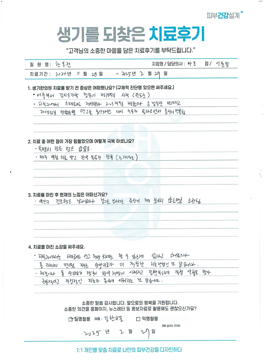 생기한의원과 함께하신 생생한 자필 및 영상 후기를 소개합니다.