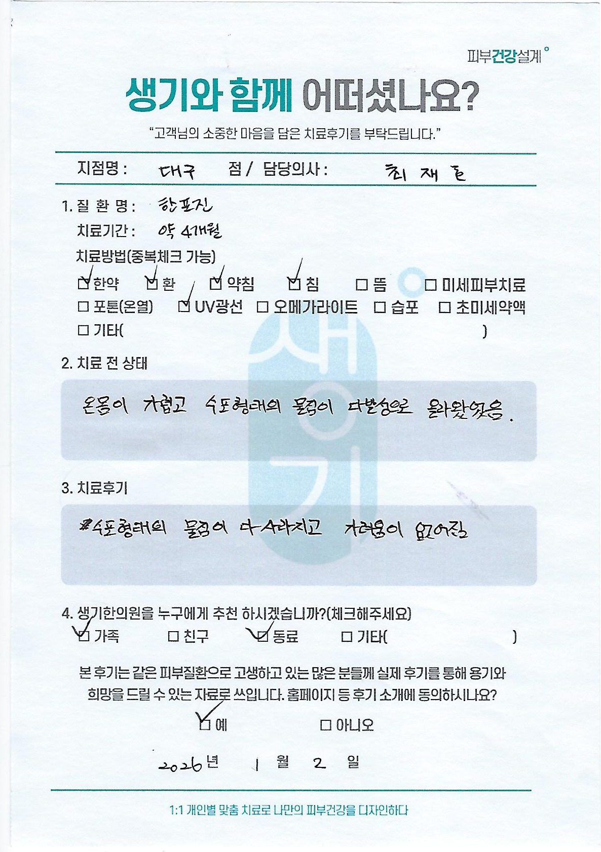 생기한의원과 함께하신 생생한 자필 및 영상 후기를 소개합니다.