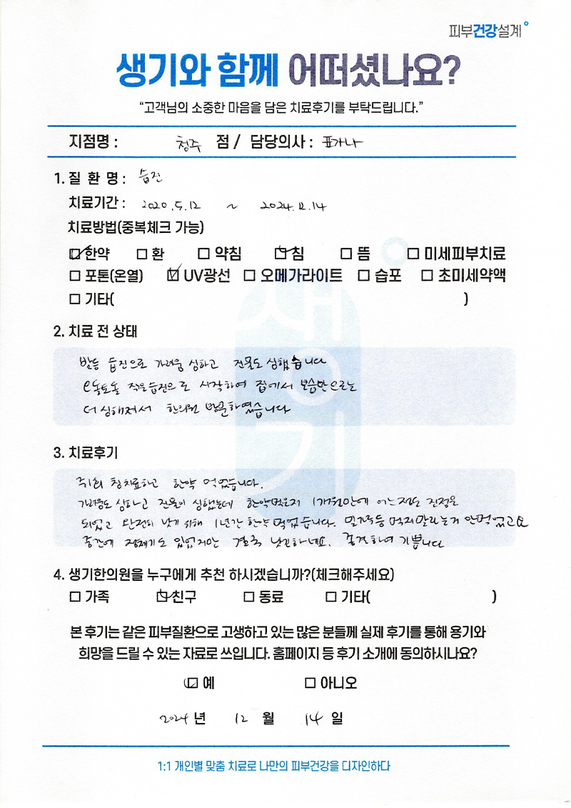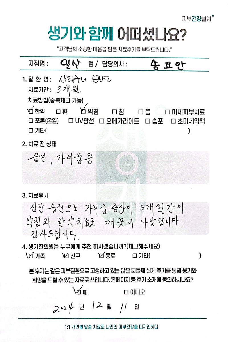 생기한의원과 함께하신 생생한 자필 및 영상 후기를 소개합니다.