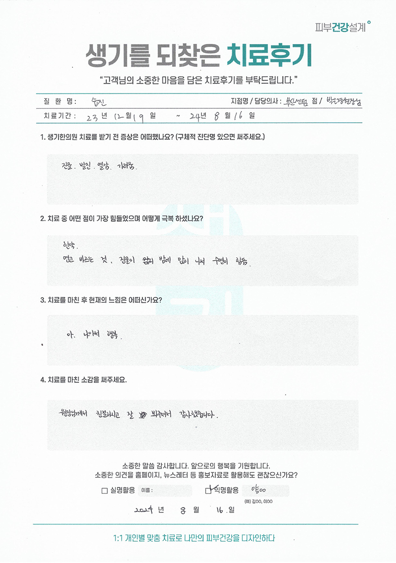 생기한의원과 함께하신 생생한 자필 및 영상 후기를 소개합니다.