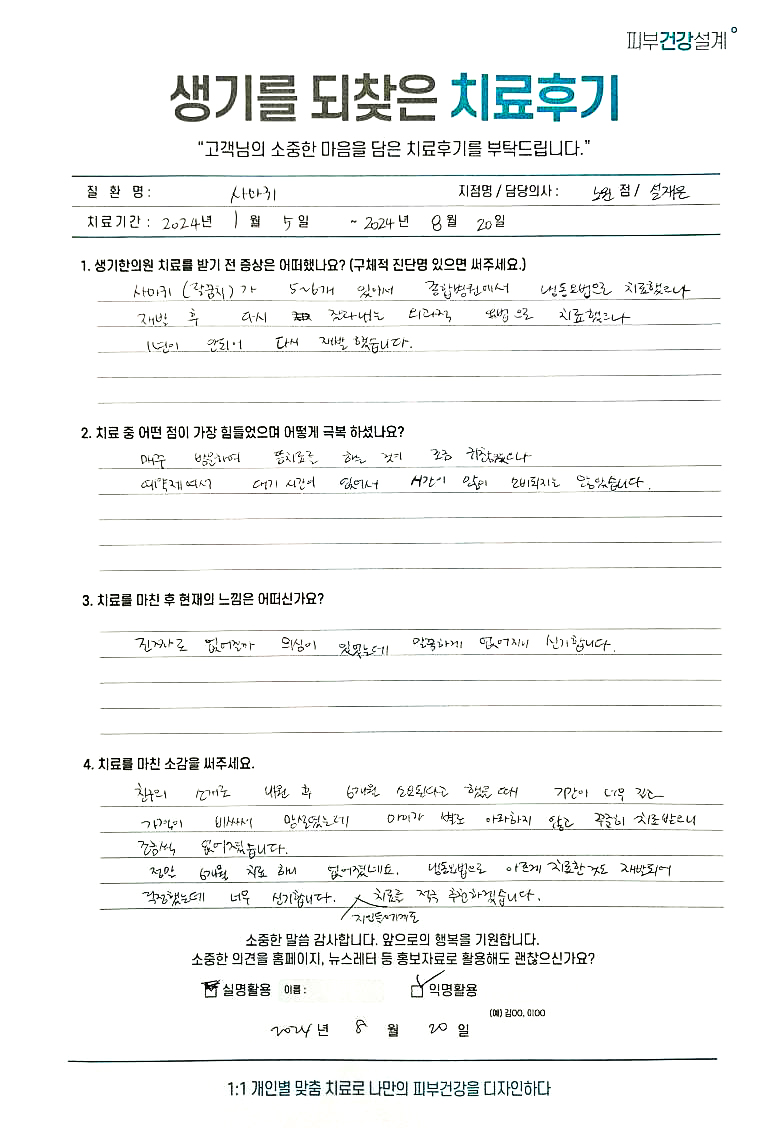 생기한의원과 함께하신 생생한 자필 및 영상 후기를 소개합니다.