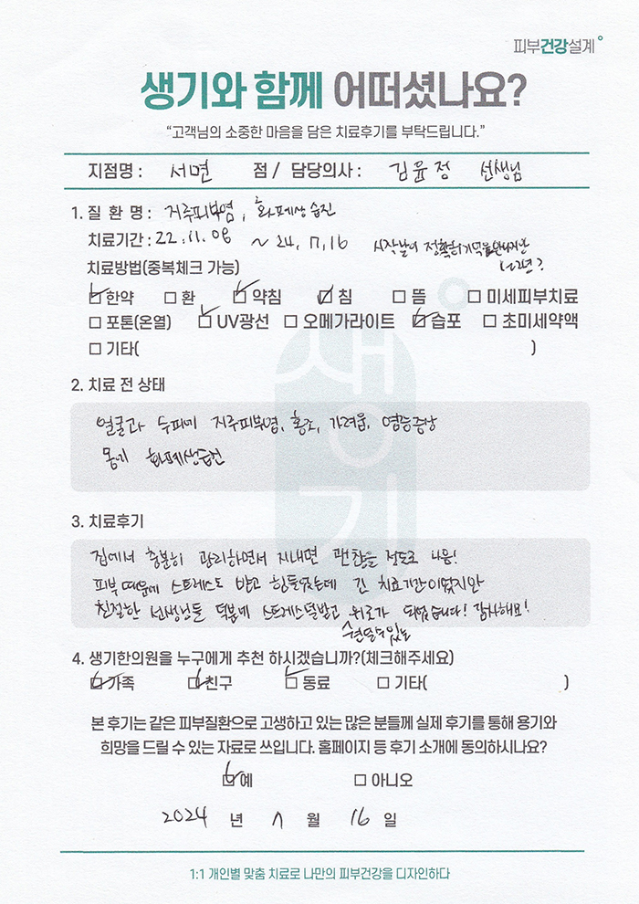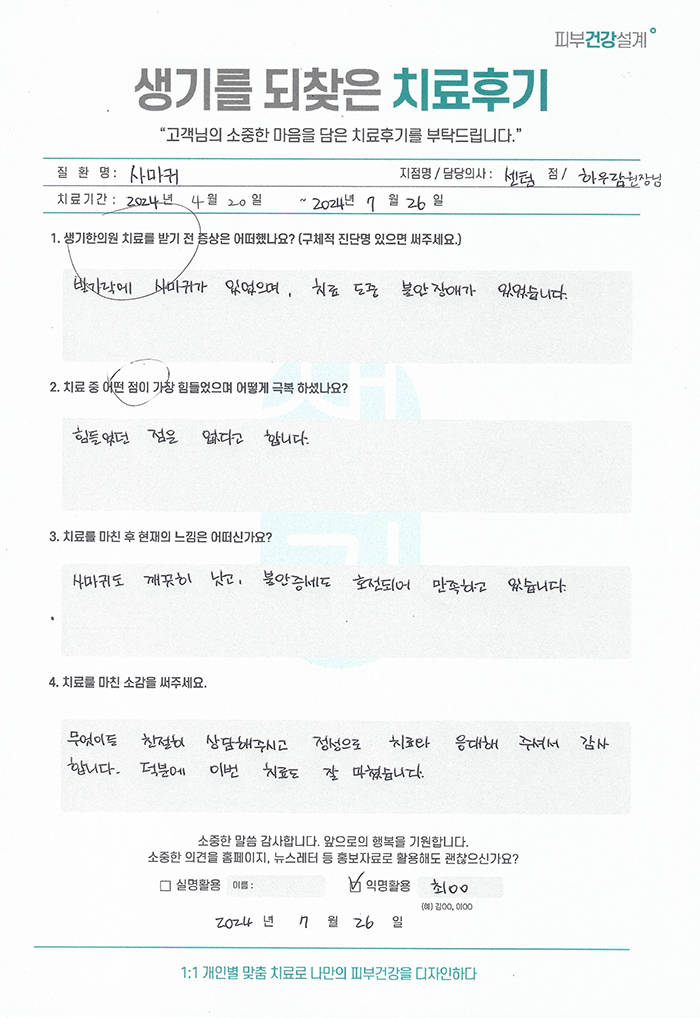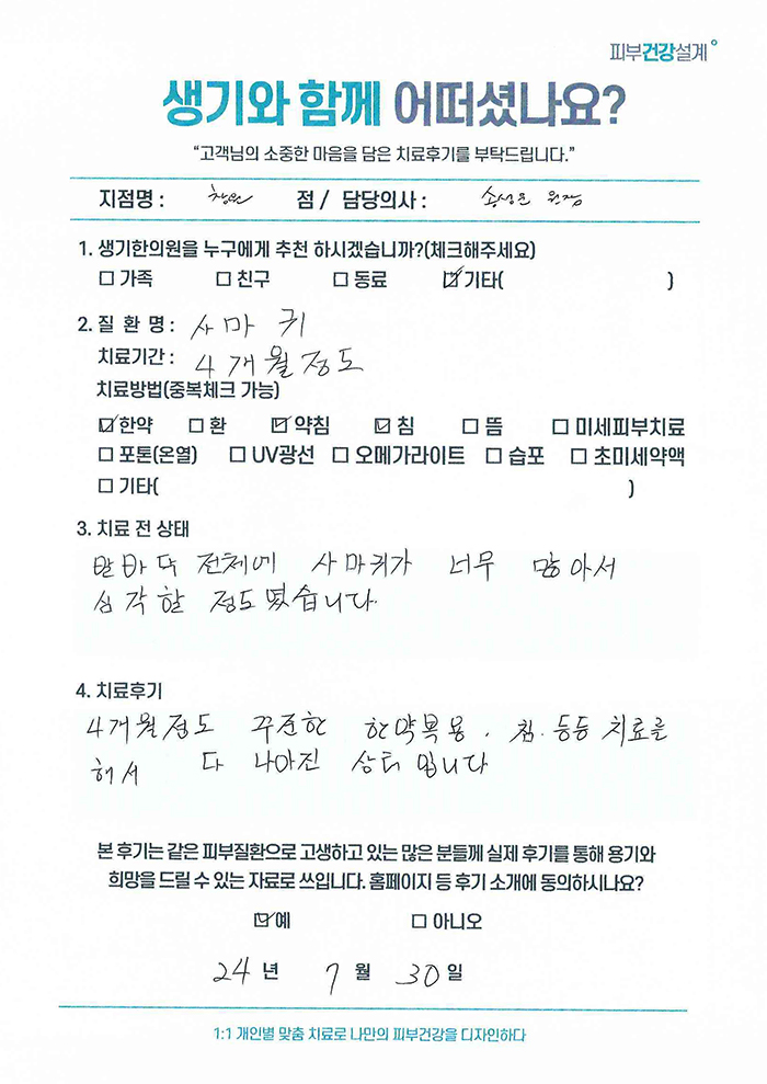 생기한의원과 함께하신 생생한 자필 및 영상 후기를 소개합니다.
