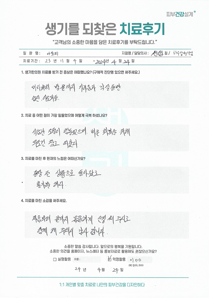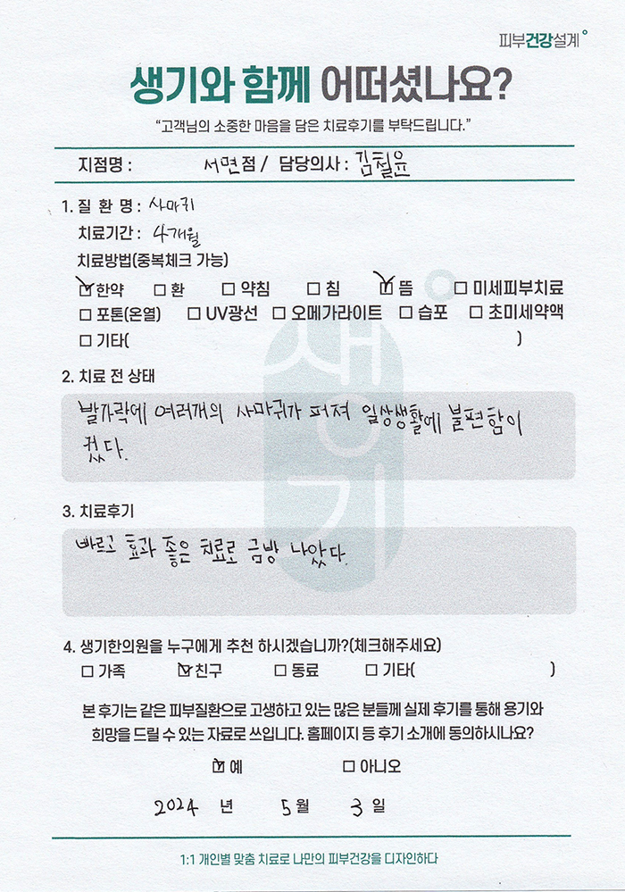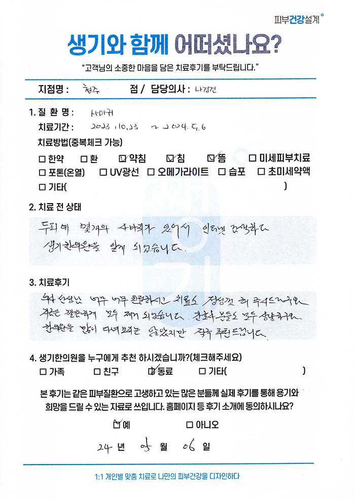 생기한의원과 함께하신 생생한 자필 및 영상 후기를 소개합니다.