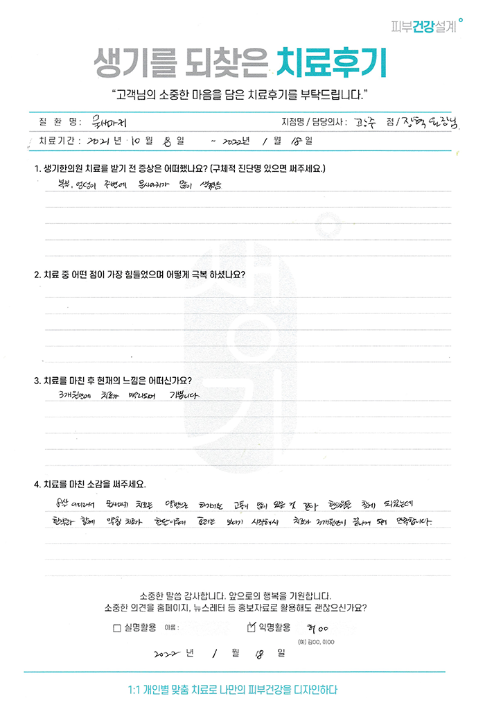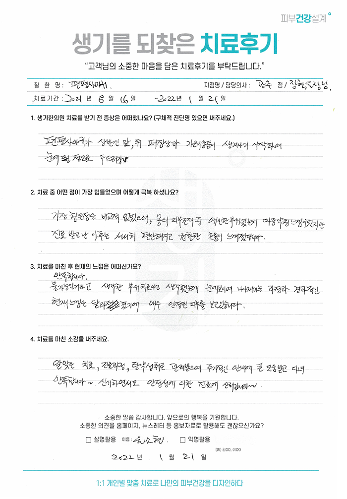 생기한의원과 함께하신 생생한 자필 및 영상 후기를 소개합니다.