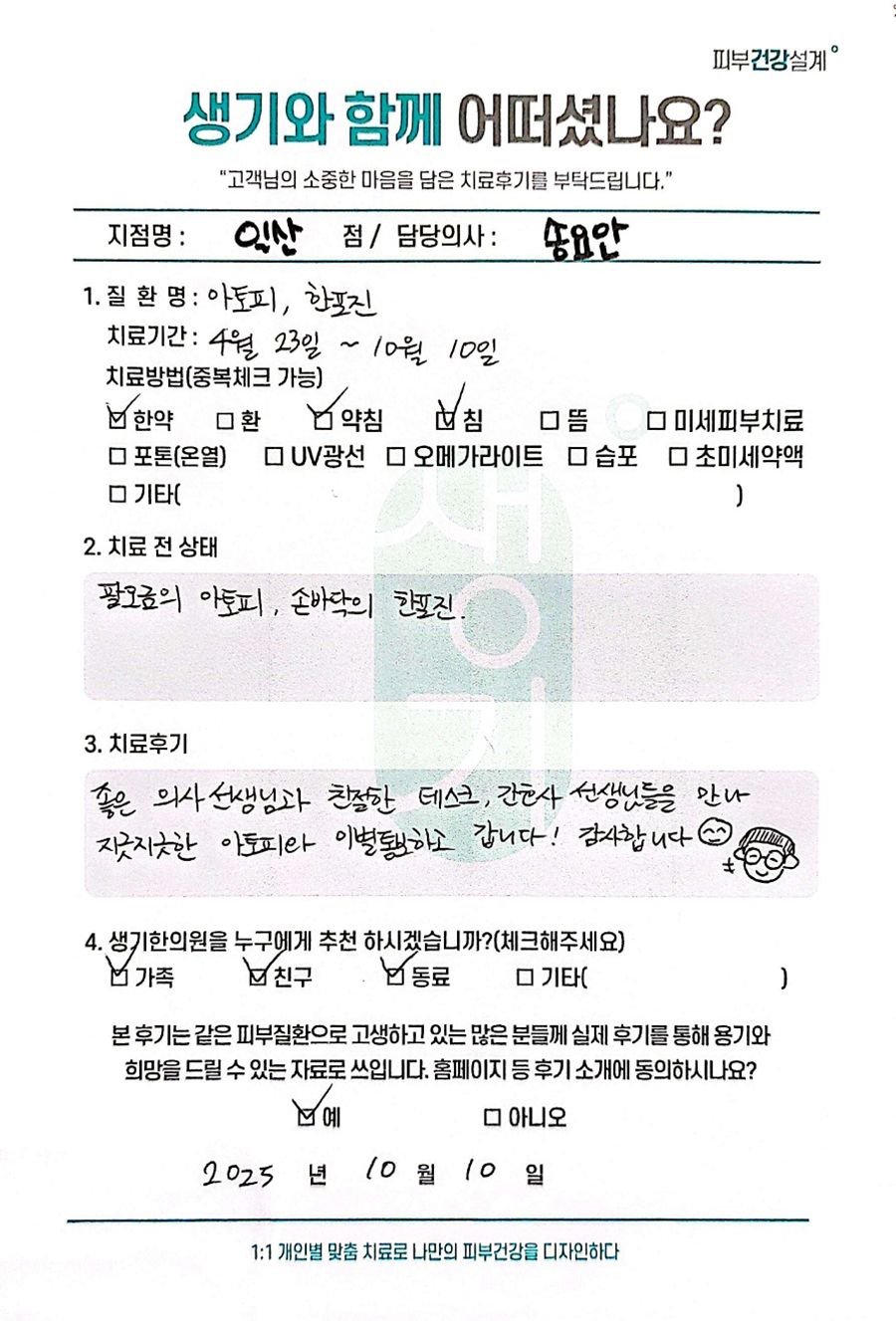 생기한의원과 함께하신 생생한 자필 및 영상 후기를 소개합니다.