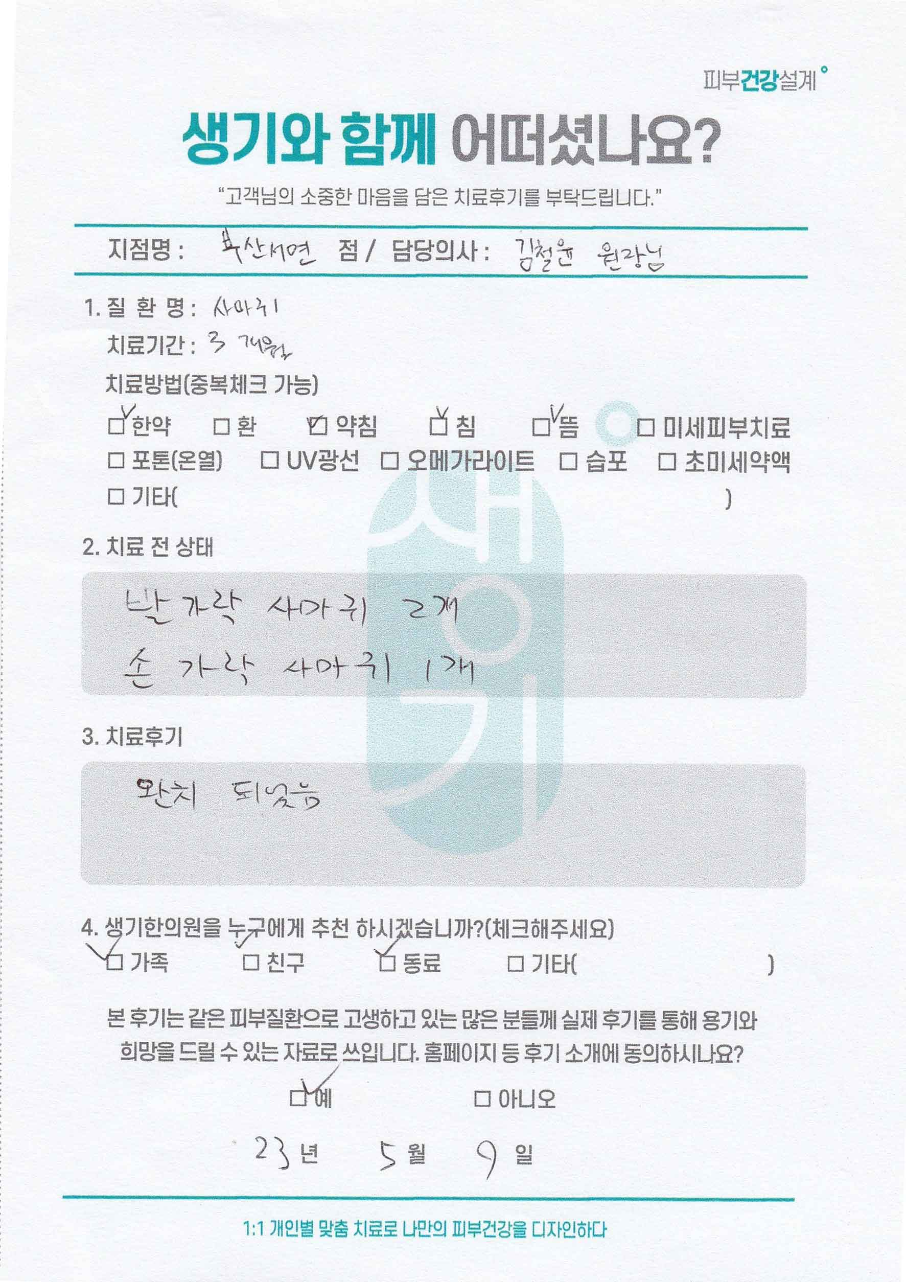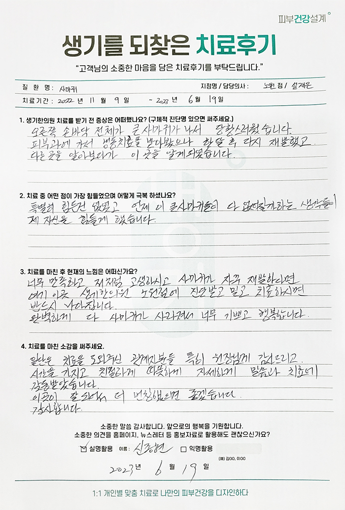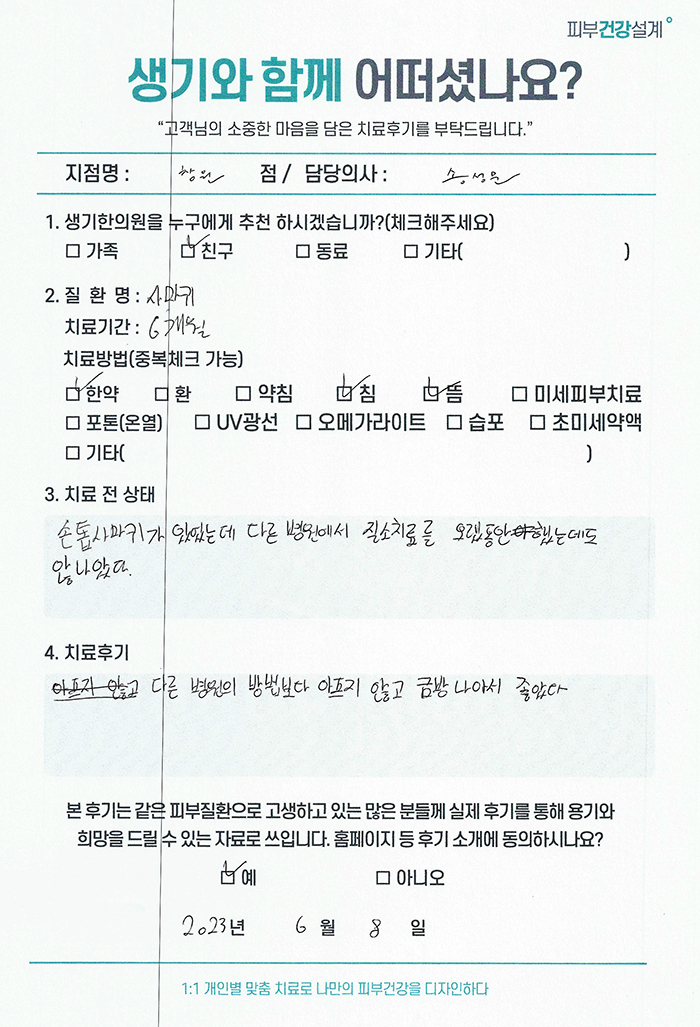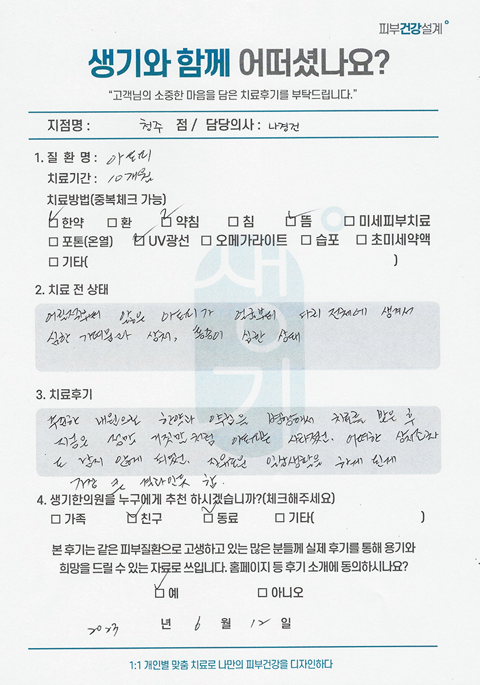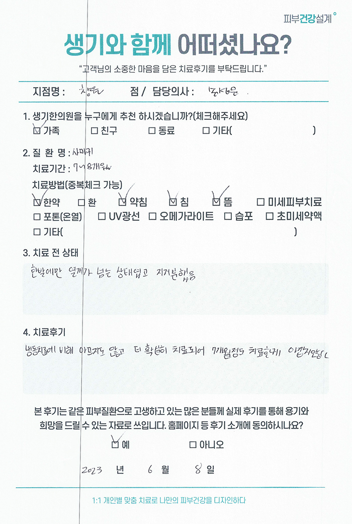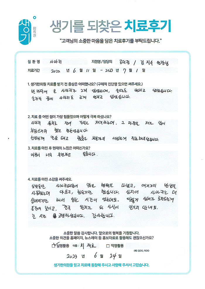 생기한의원과 함께하신 생생한 자필 및 영상 후기를 소개합니다.