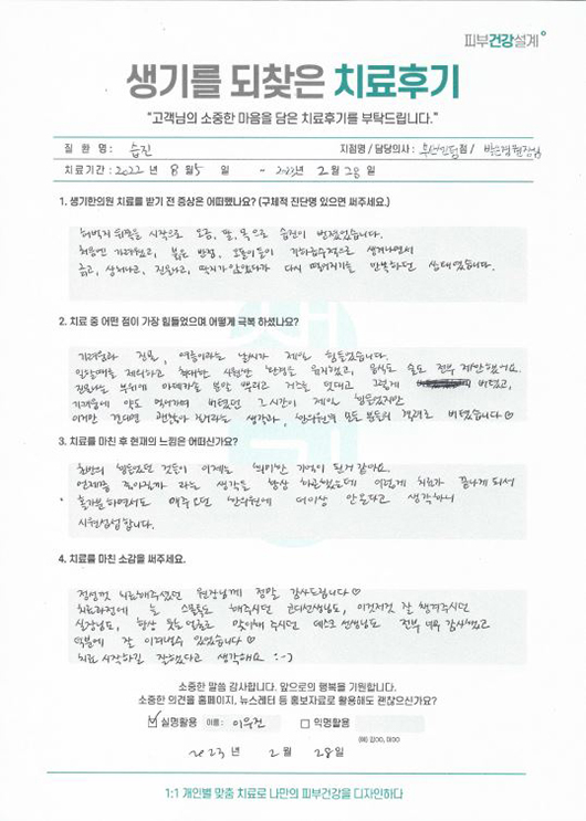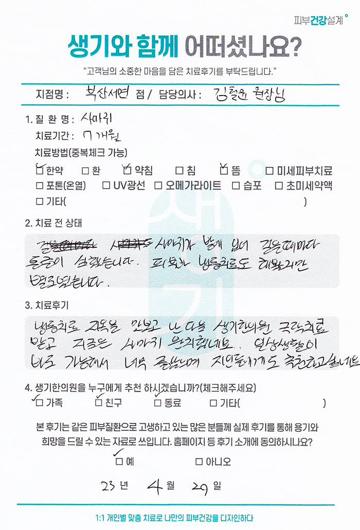 생기한의원과 함께하신 생생한 자필 및 영상 후기를 소개합니다.
