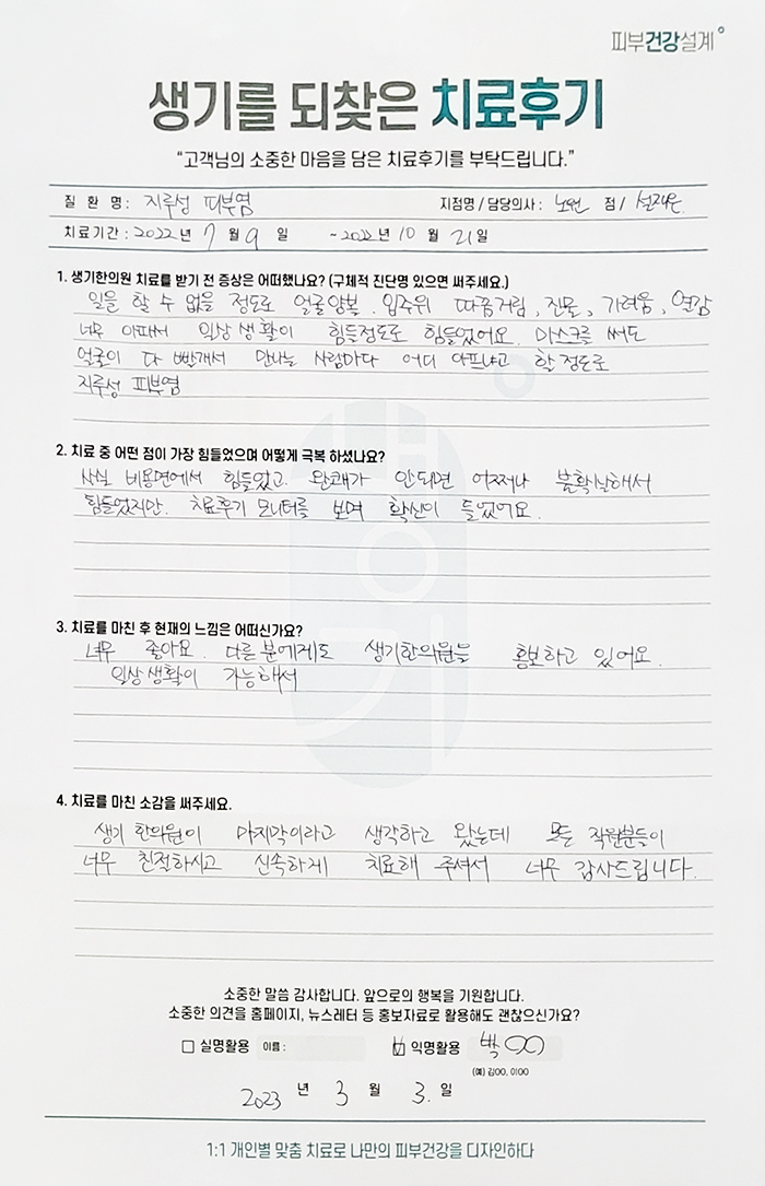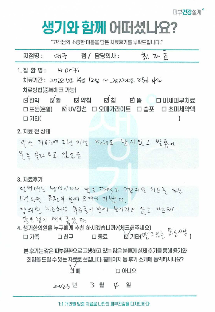 생기한의원과 함께하신 생생한 자필 및 영상 후기를 소개합니다.