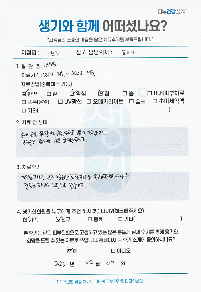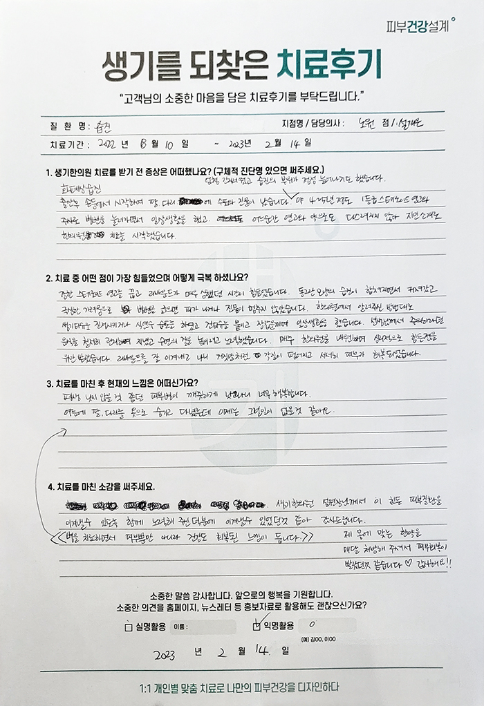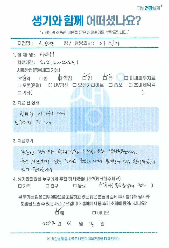 생기한의원과 함께하신 생생한 자필 및 영상 후기를 소개합니다.