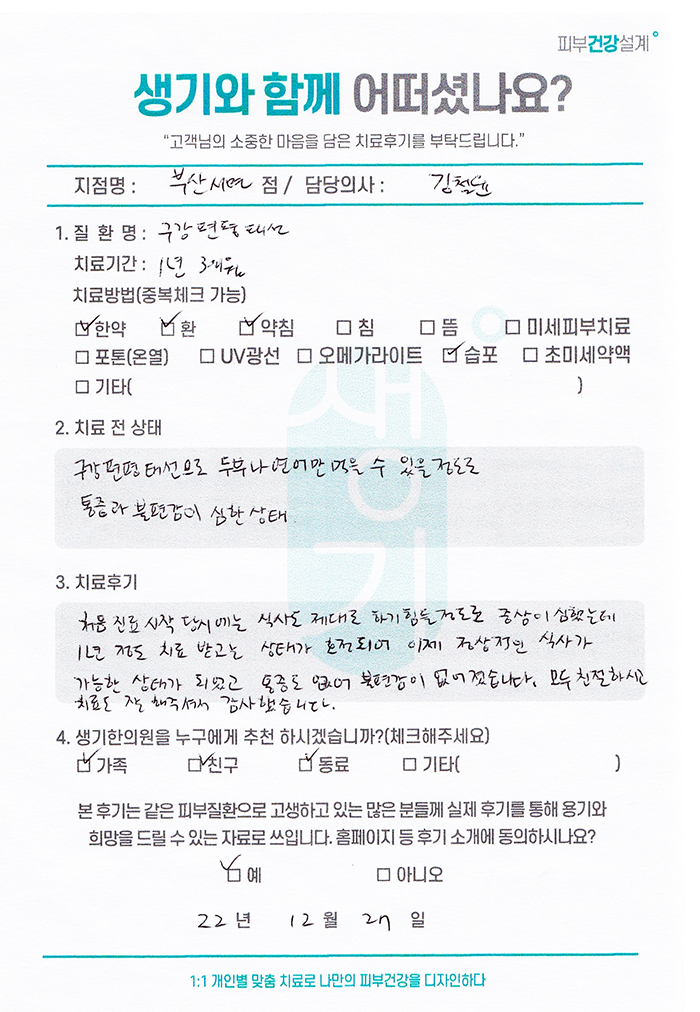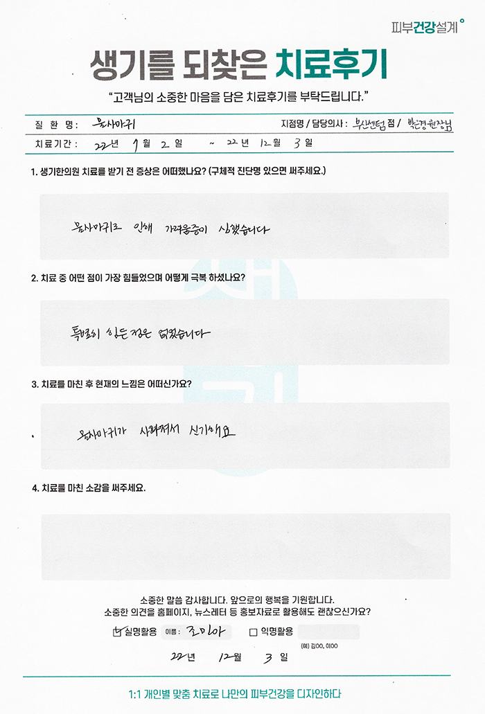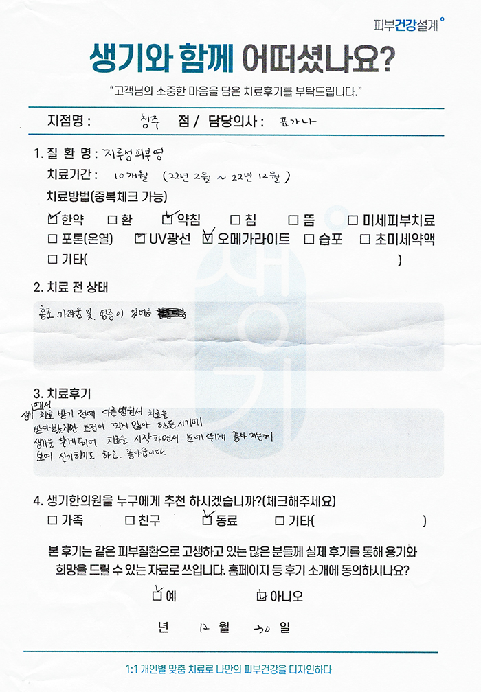 생기한의원과 함께하신 생생한 자필 및 영상 후기를 소개합니다.
