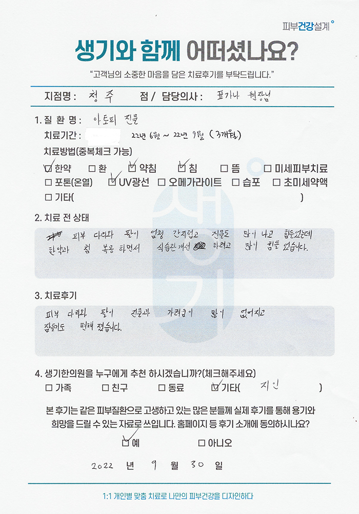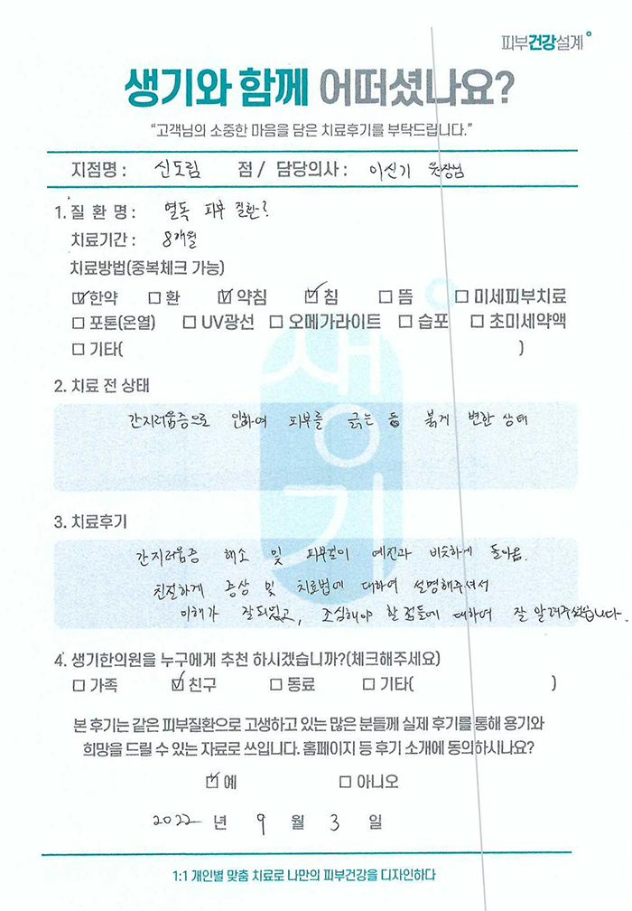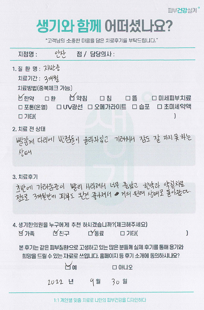 생기한의원과 함께하신 생생한 자필 및 영상 후기를 소개합니다.