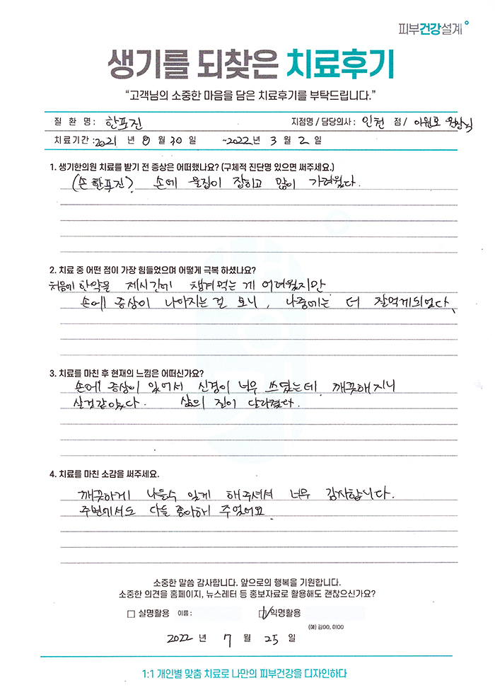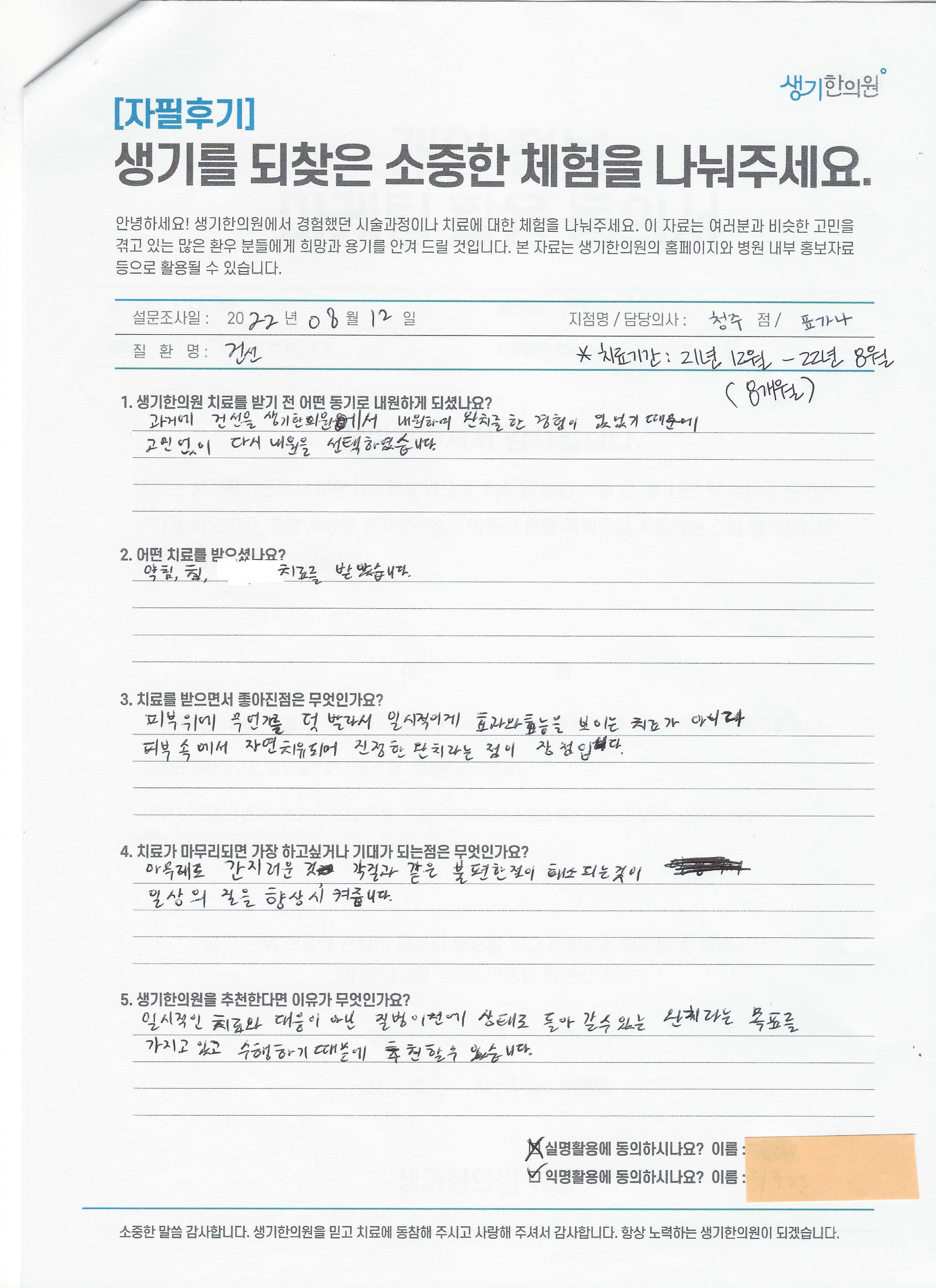 생기한의원과 함께하신 생생한 자필 및 영상 후기를 소개합니다.