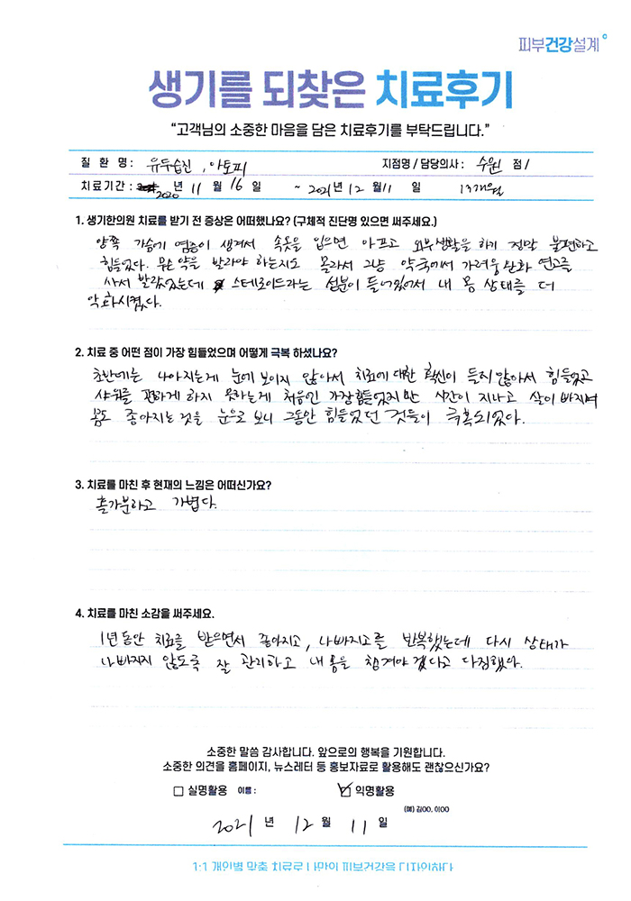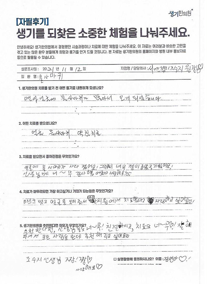 생기한의원과 함께하신 생생한 자필 및 영상 후기를 소개합니다.