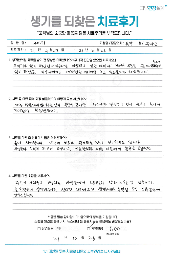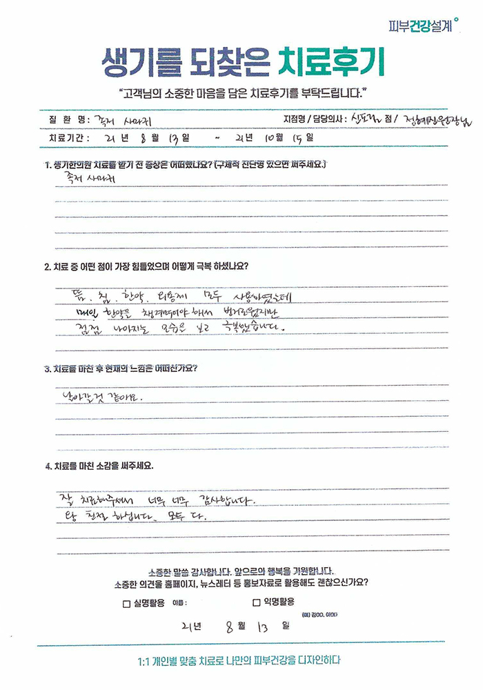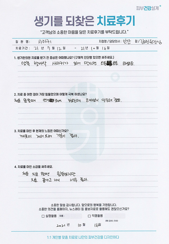 생기한의원과 함께하신 생생한 자필 및 영상 후기를 소개합니다.