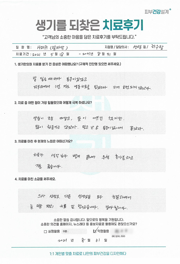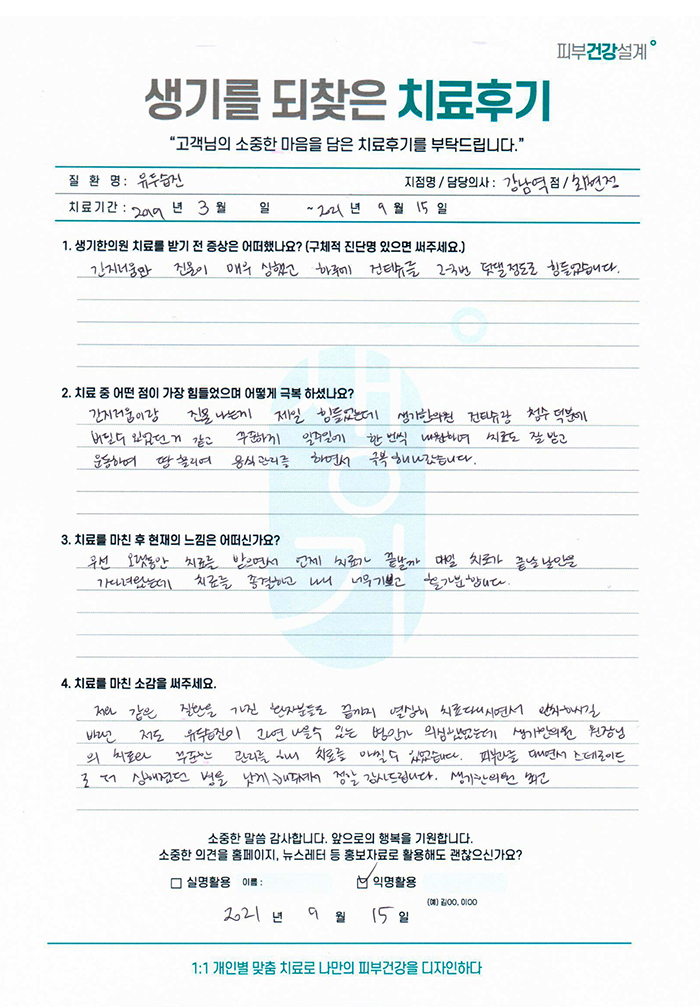 생기한의원과 함께하신 생생한 자필 및 영상 후기를 소개합니다.