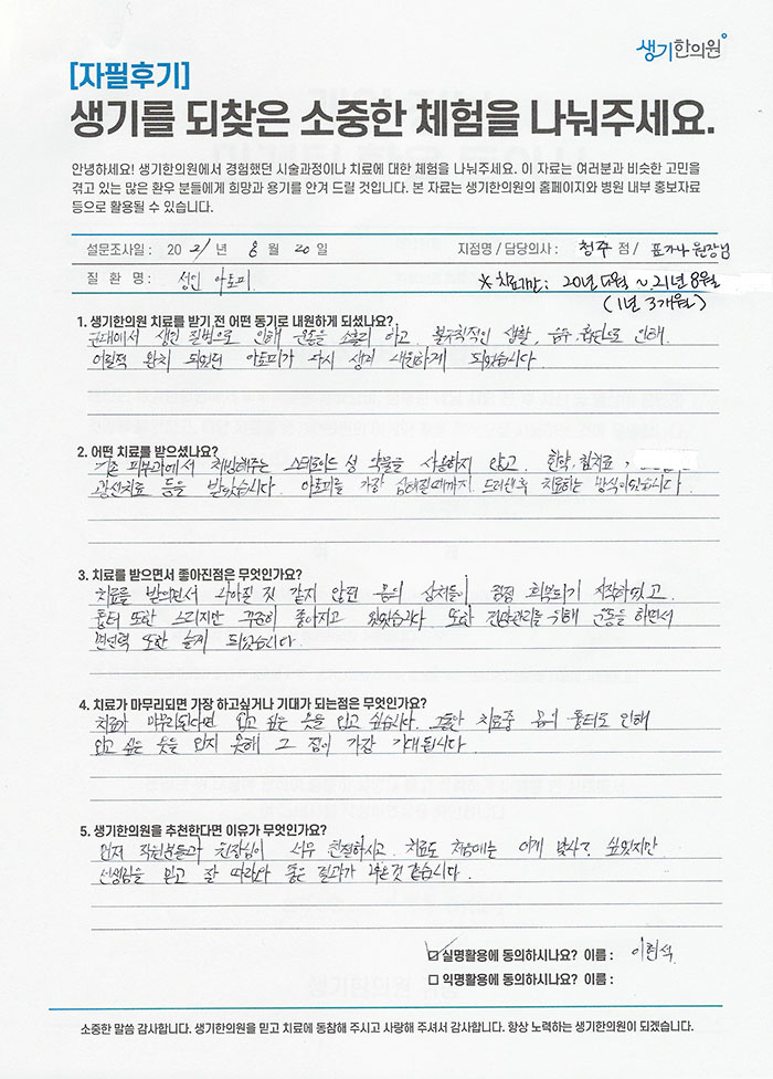 생기한의원과 함께하신 생생한 자필 및 영상 후기를 소개합니다.