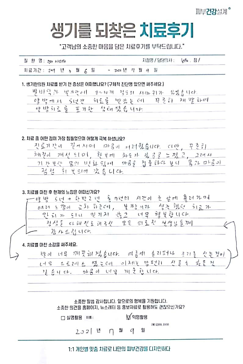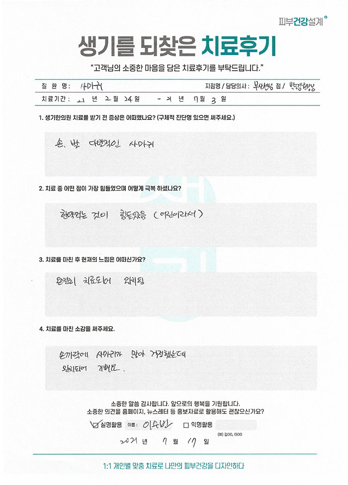 생기한의원과 함께하신 생생한 자필 및 영상 후기를 소개합니다.