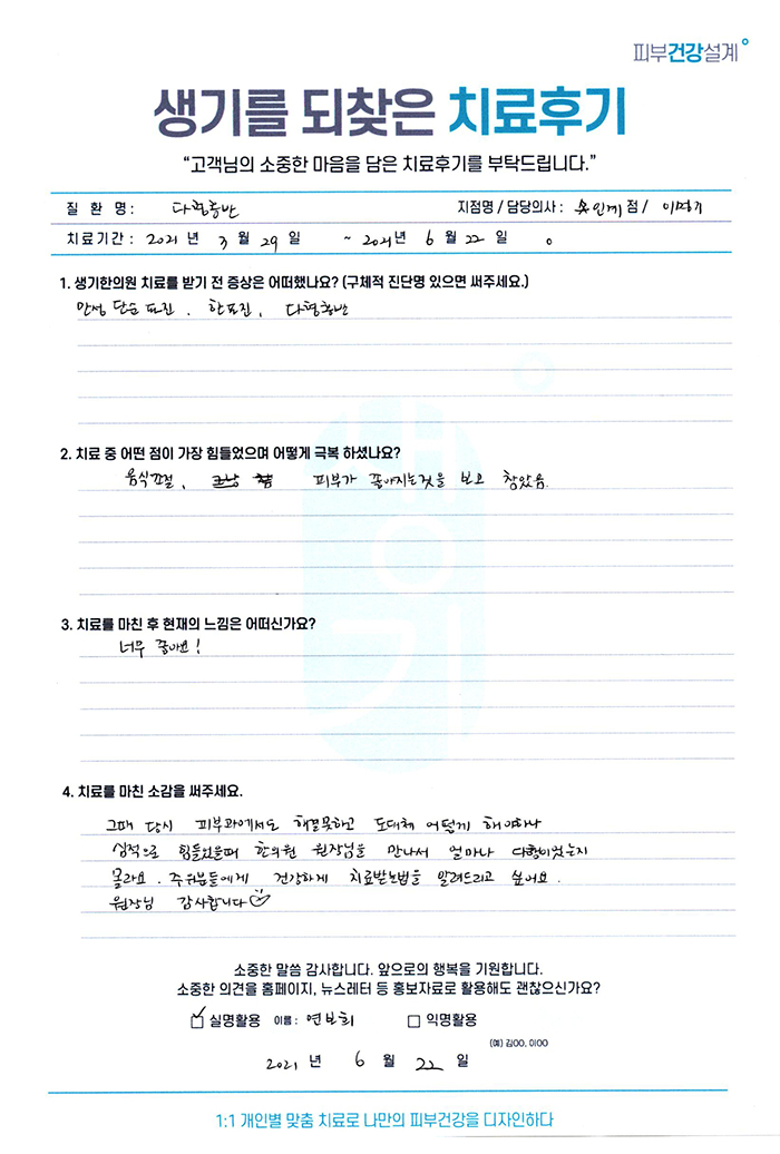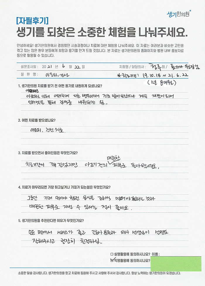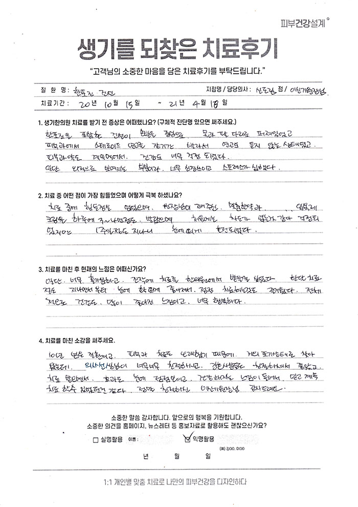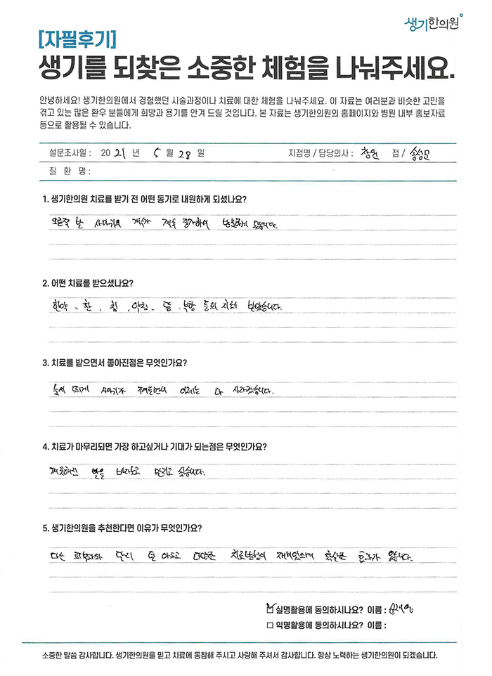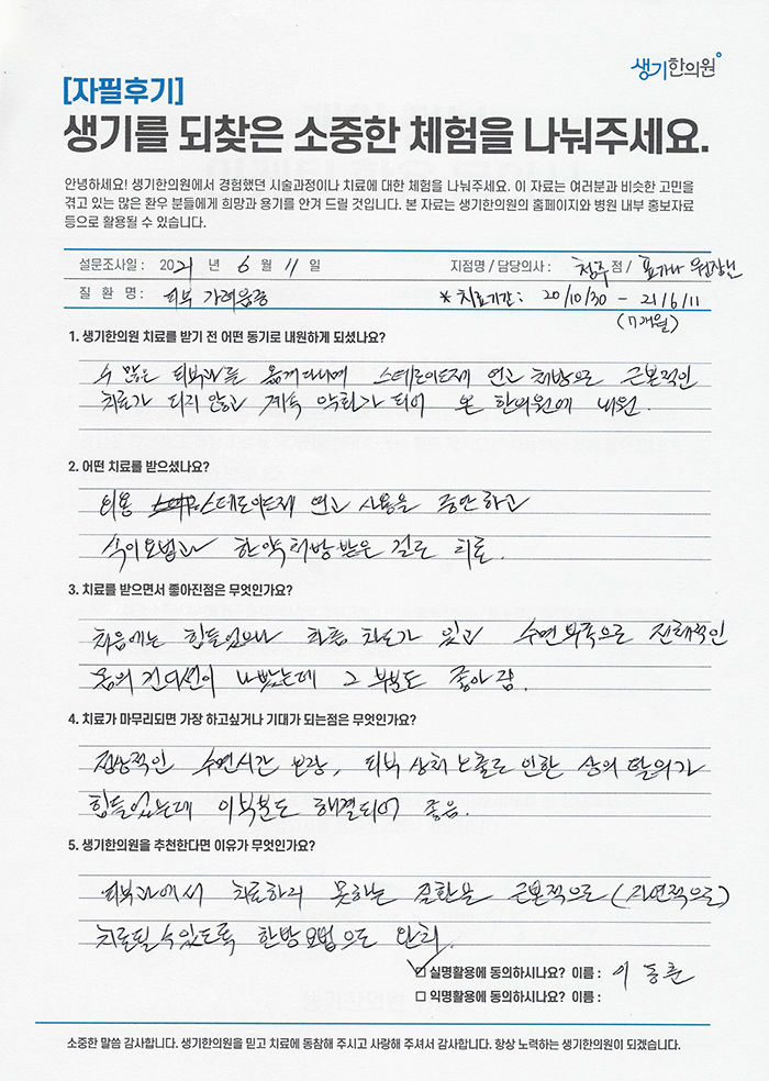 생기한의원과 함께하신 생생한 자필 및 영상 후기를 소개합니다.