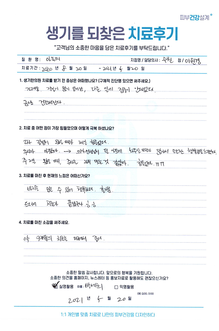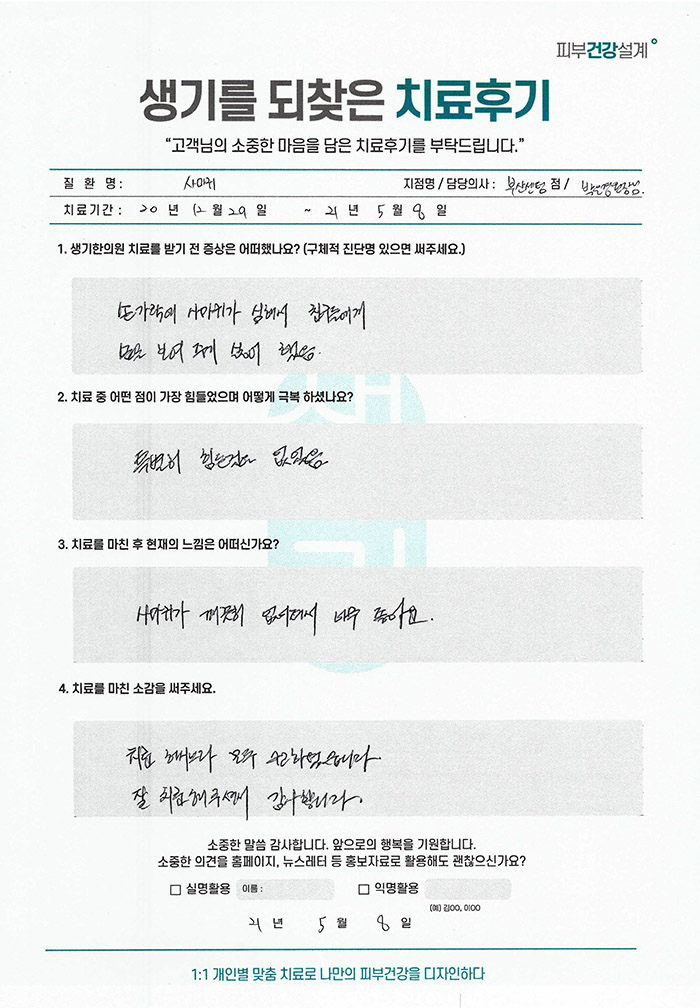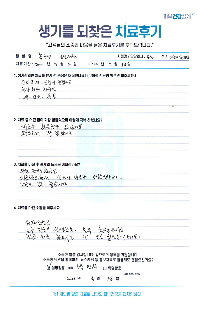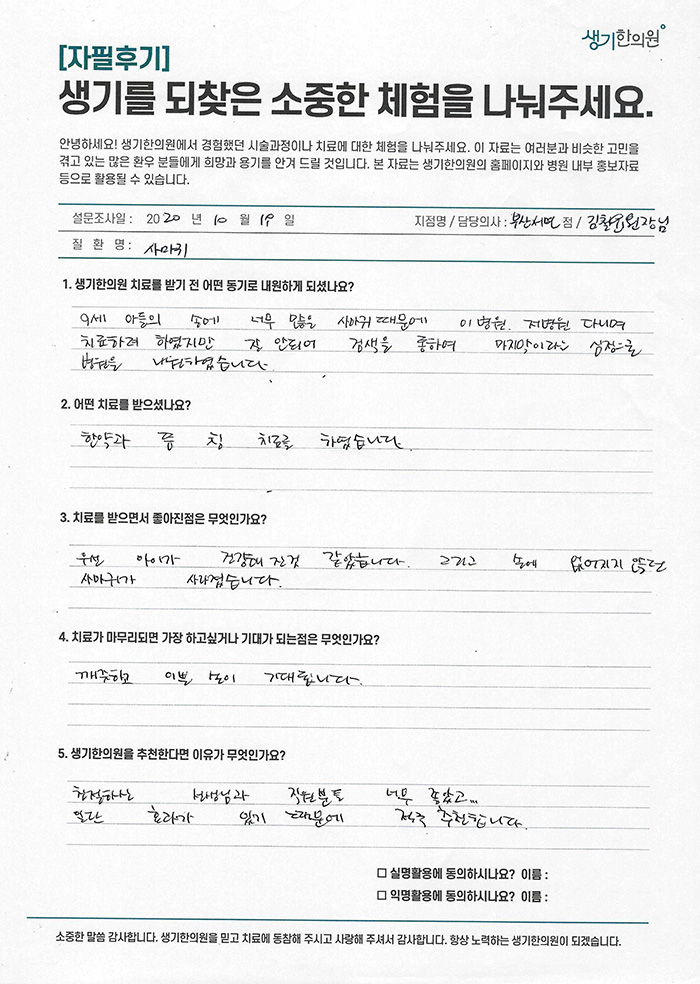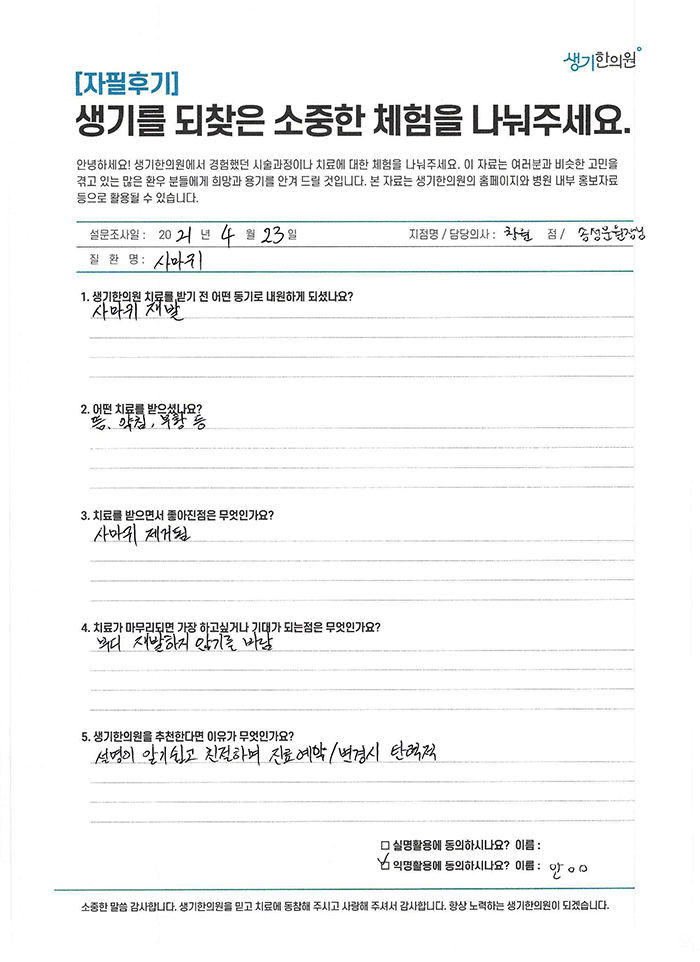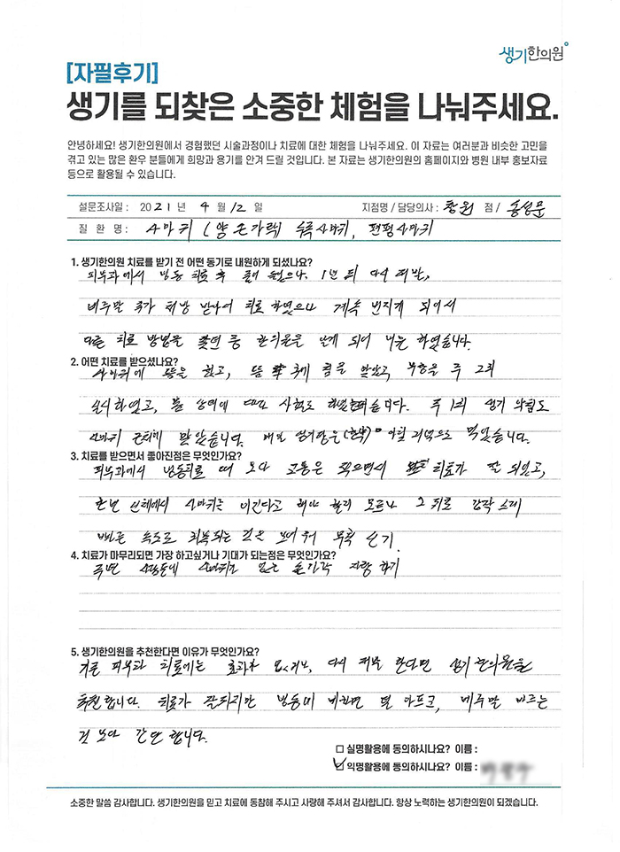 생기한의원과 함께하신 생생한 자필 및 영상 후기를 소개합니다.