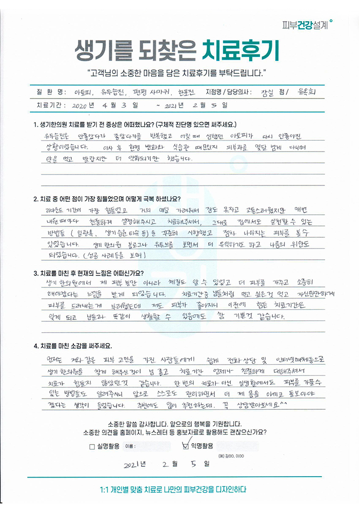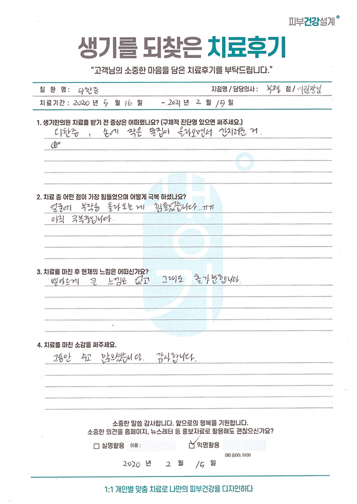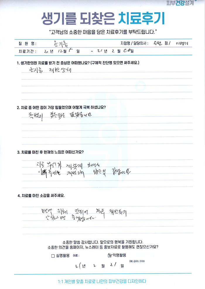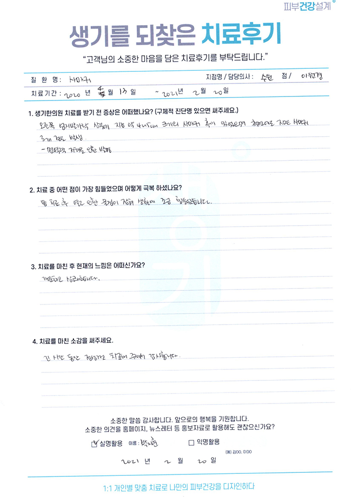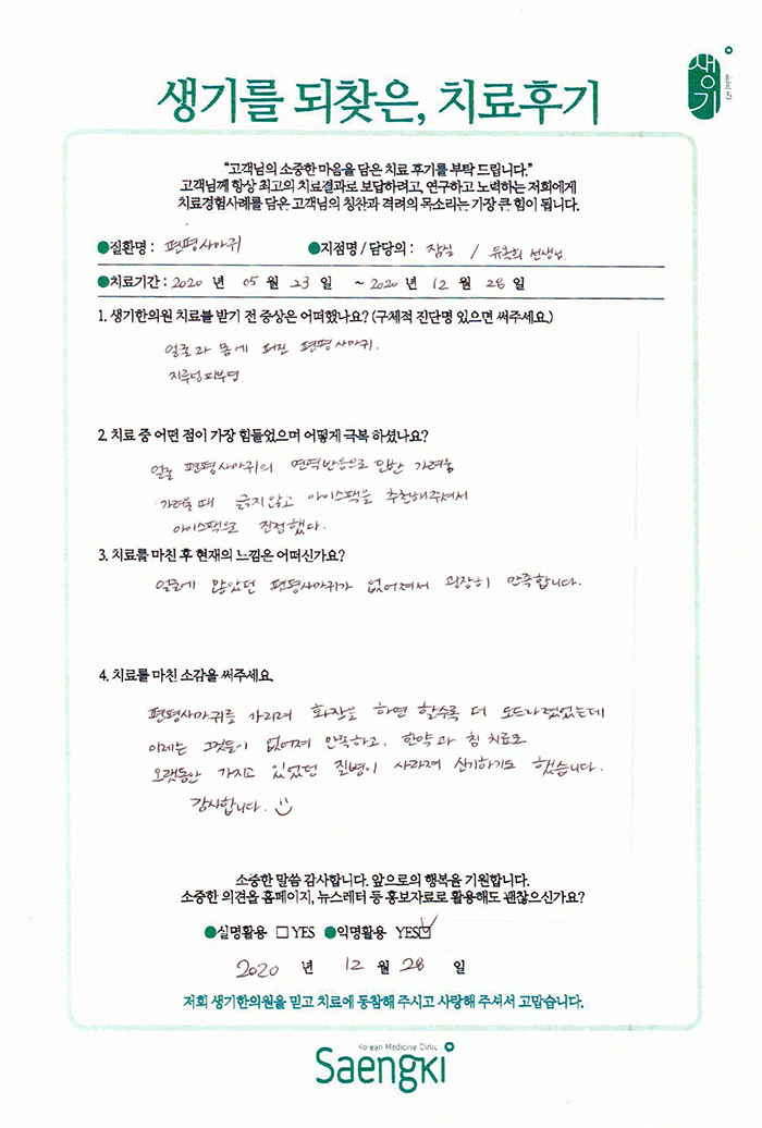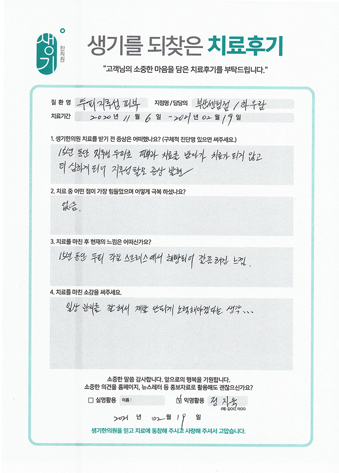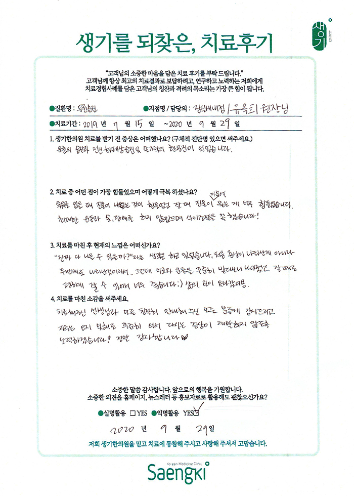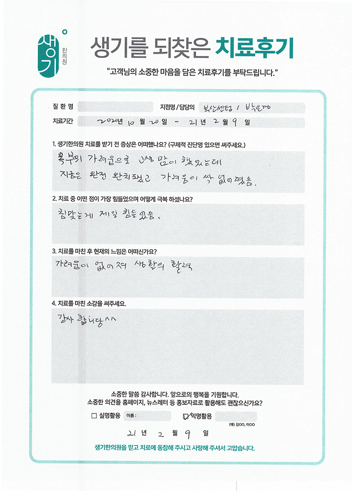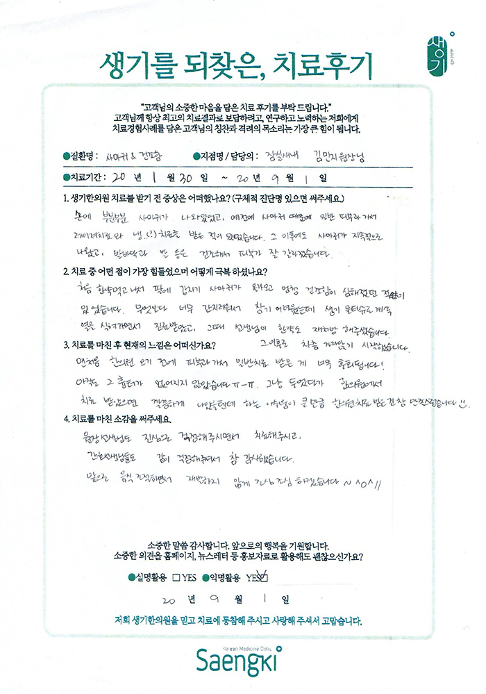 생기한의원과 함께하신 생생한 자필 및 영상 후기를 소개합니다.