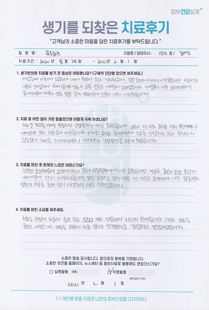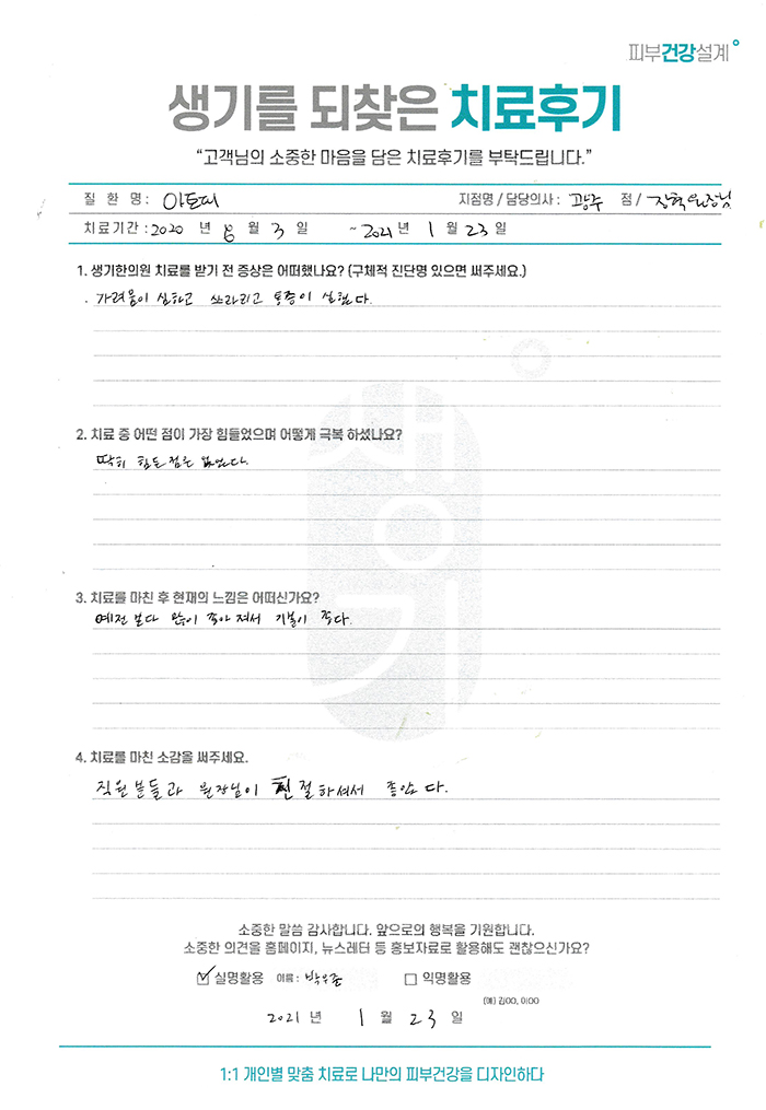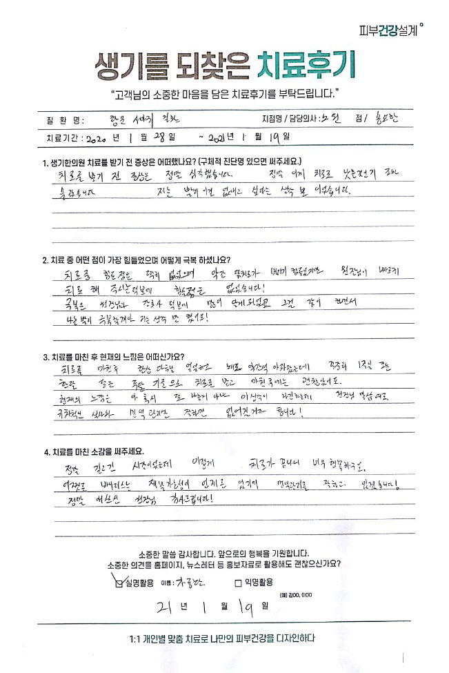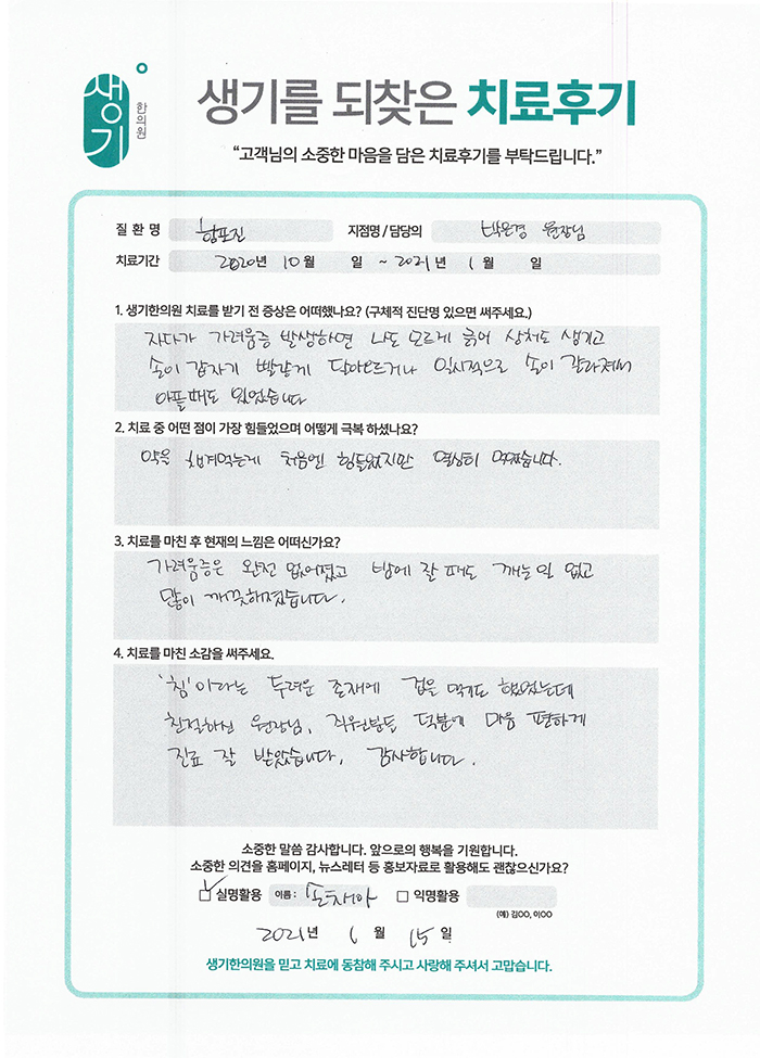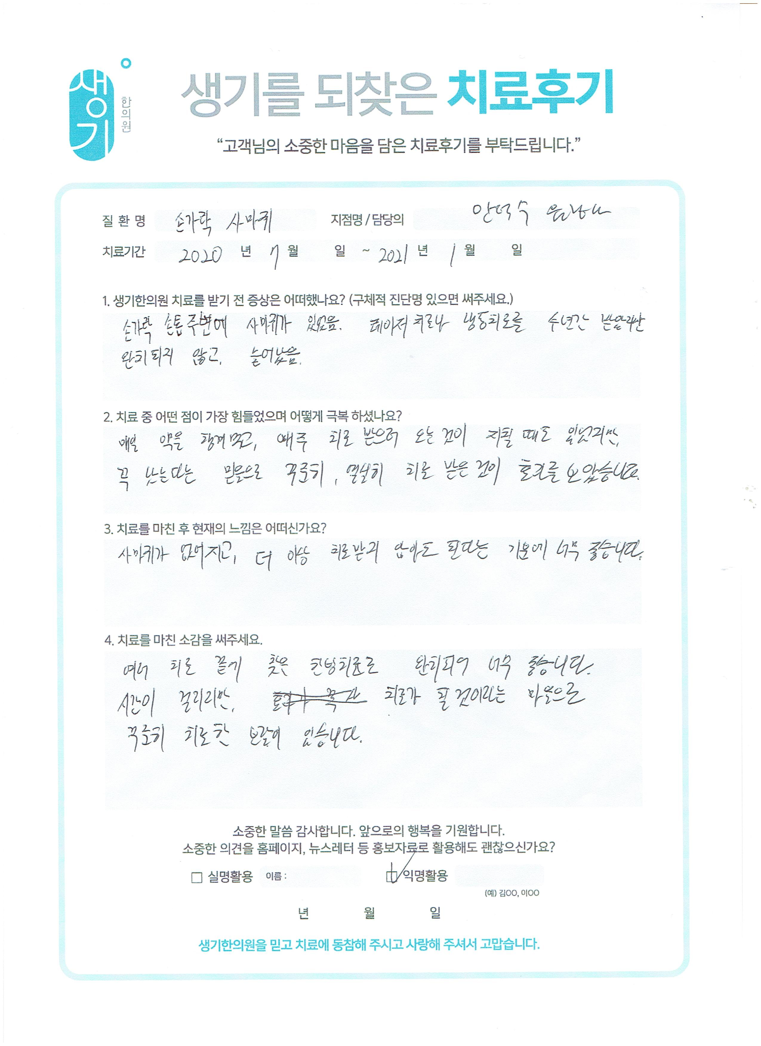 생기한의원과 함께하신 생생한 자필 및 영상 후기를 소개합니다.