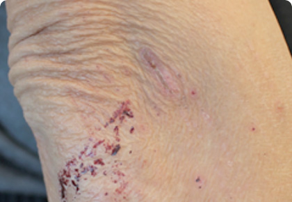 긁는 습관으로 인해 피부 표피가 나무껍질처럼