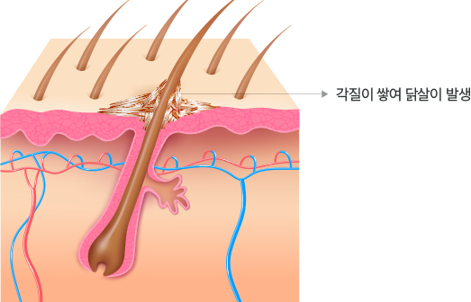 피부를 보호하는 각질(케라틴)이 과도하게 생성되어 모공각화증 및 다른 질환이 발생할 수 있는 것입니다.